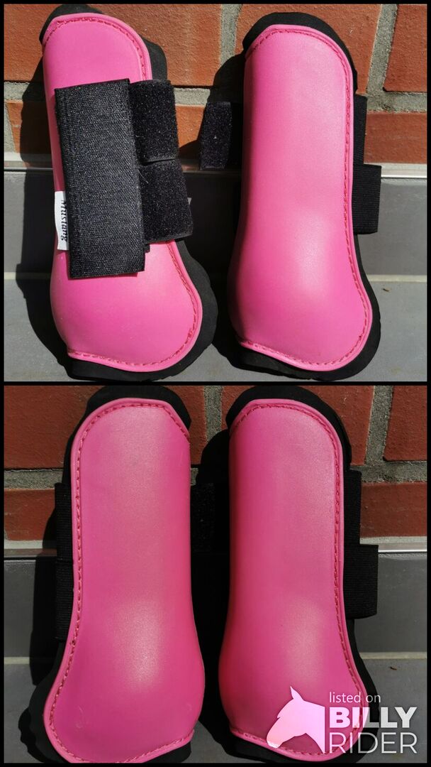 Getry różowe - Nowe różowe getry WB. Kupiłem je w zeszłym roku na wystawie koni. Ponieważ 2 tygodnie temu musiałam niespodziewanie pozwolić mojemu koniowi odejść za Tęczowy Most, a one zdecydowanie nie pasują do mojego kucyka, wystawiam je na sprzedaż.