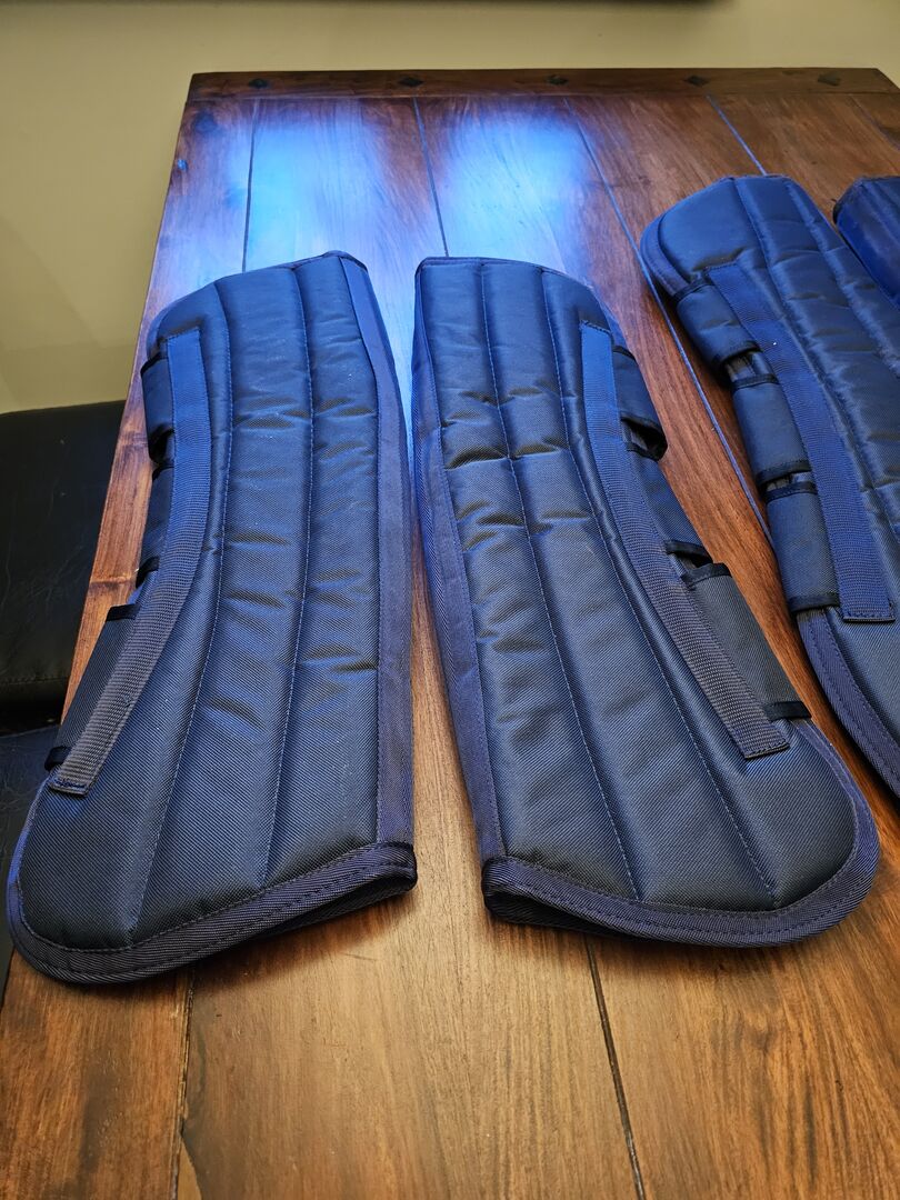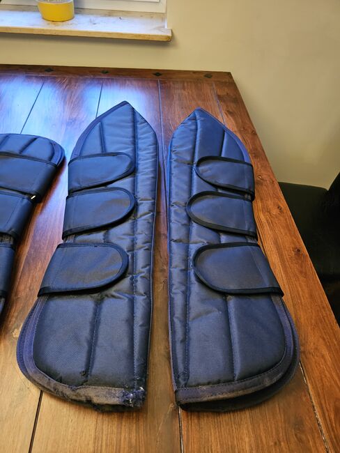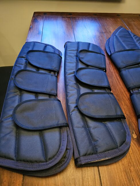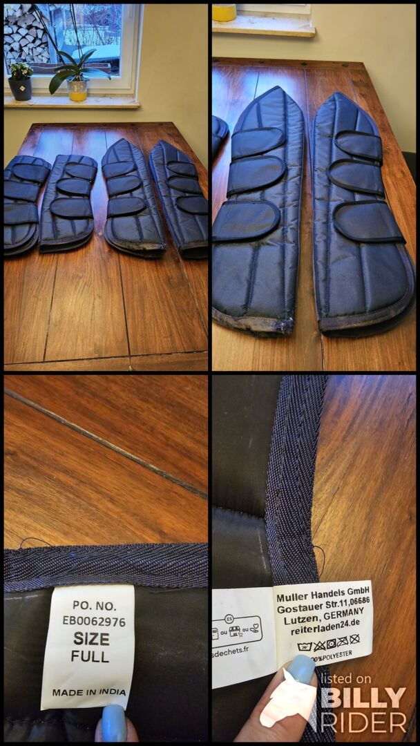 Getry transportowe - Oferuję parę butów transportowych z Reiterladen24.de w rozmiarze warmblood (full). Były używane tylko raz, aby odebrać konia od hodowcy. Na jednym dużym ochraniaczu jest małe przetarcie, patrz zdjęcia. W przeciwnym razie w porządku. Możliwa wysyłka i płatność przez PayPal. Nowa cena wynosiła 40 €.