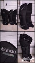 Getry transportowe Bucas - Zestaw 4 getrów transportowych od Bucas, wysokie, nogi są chronione dookoła. Świeżo wyczyszczone. Wysyłka jest możliwa, ze względu na rozmiar getrów musiałbym najpierw zapytać o cenę.