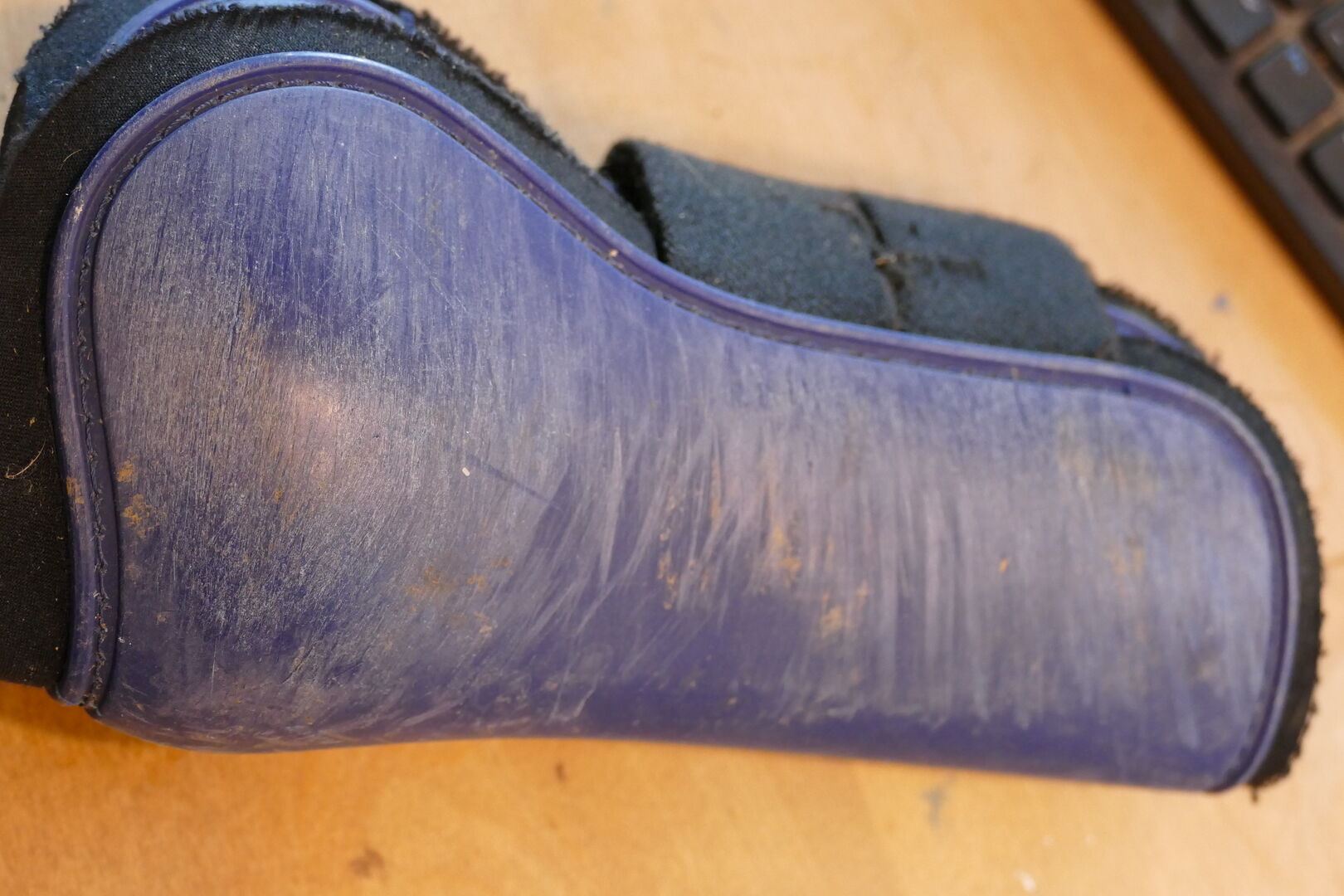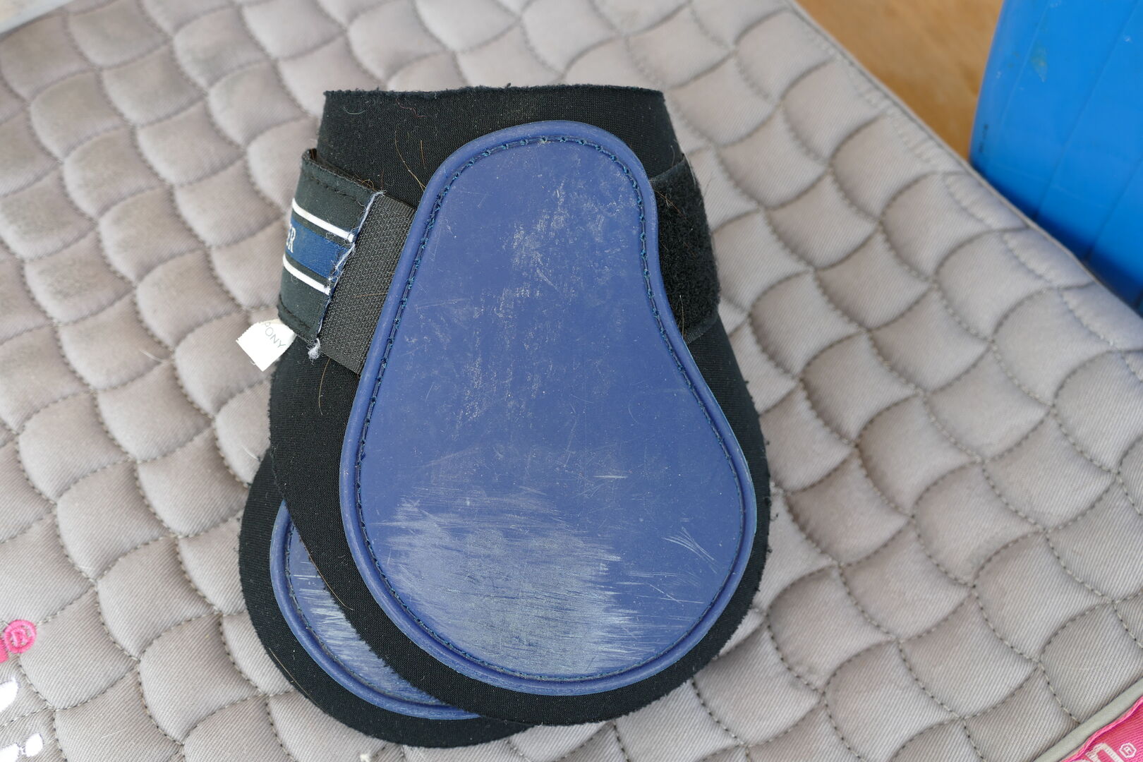 Getry z paskami do kompletu Pony Blue - Komplet getrów i butów w kolorze niebieskim dla kucyków. Mocno zużyte. Cena pierwotna razem 25€.