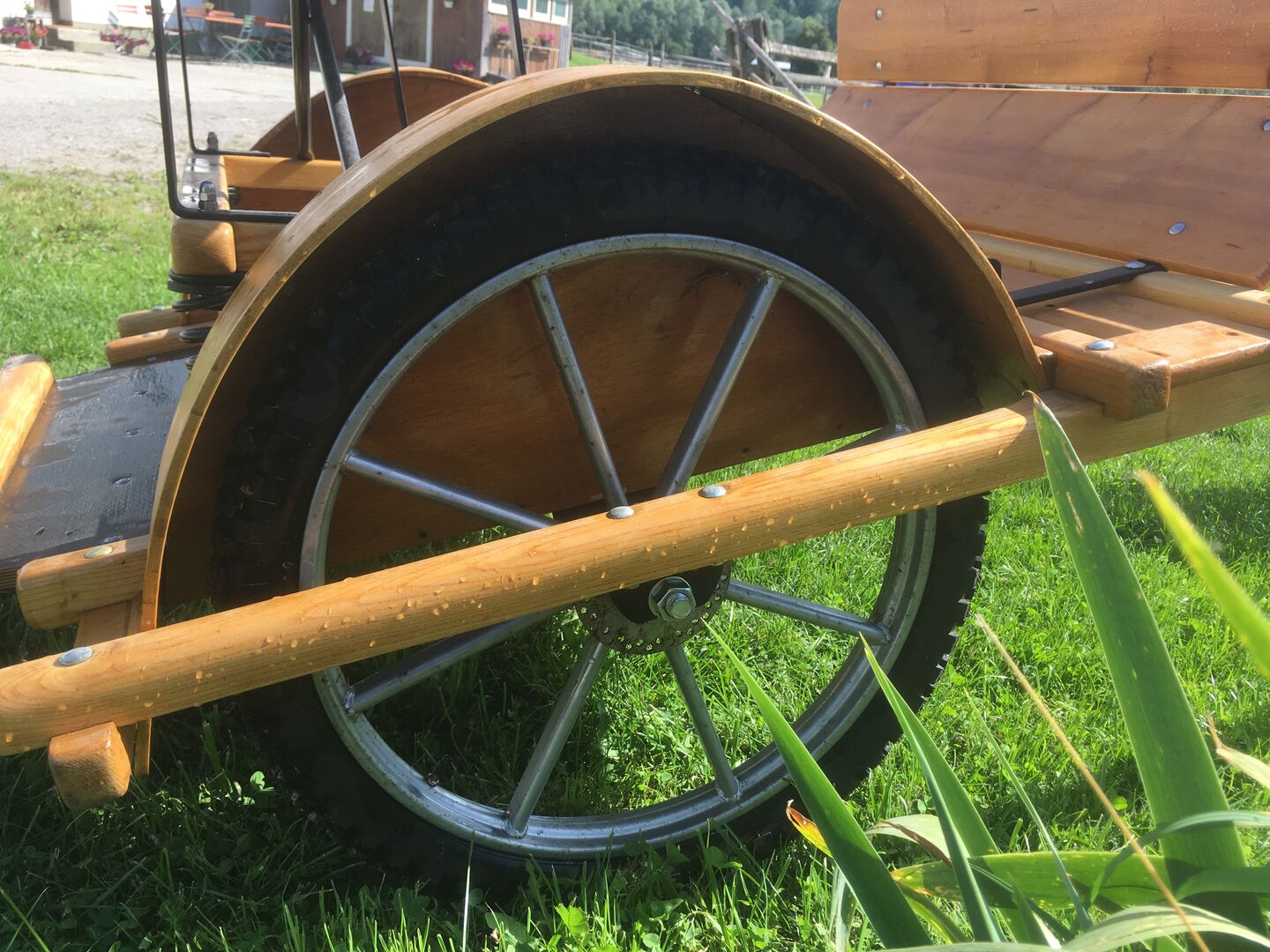 Gig / sulky wykonany z drewna jesionowego - KOD POCZTOWY 83236 Na sprzedaż jest klasyczny koncert wykonany z drewna jesionowego. Niestety nie był już przeze mnie używany, ponieważ mój koń (stm 152m) zmarł. Piękne drewno jesionowe jest w idealnym stanie i zostało całkowicie przeszlifowane i polakierowane kilkoma warstwami lakieru do łodzi, wszystkie śruby / śruby blokujące itp. zostały odnowione. Koła są jak nowe (nieużywane), przygotowane do hamulców tarczowych, układ hamulcowy nie został (jeszcze) zainstalowany. W zestawie plandeka ochronna (plandeka ciężarówki). VB: złóż mi realistyczną ofertę około 500 € (nie zostanie ona rozdana i można zorganizować lokalną usługę dostawy).