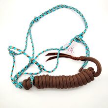 Górny węzeł halter WB i XFULL z liną do pracy naziemnej - Halter z węzłem Skyland z liną do pracy naziemnej Standardowy miękki halter z liną do pracy w terenie w kolorze Skyland i brązowym.