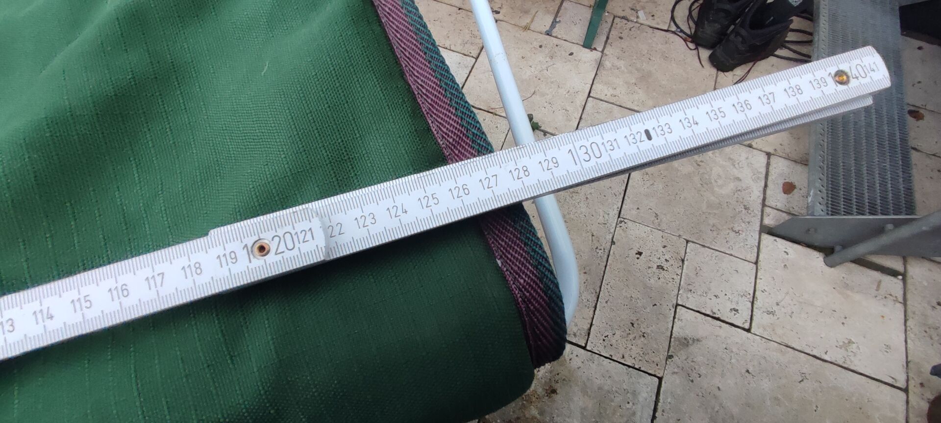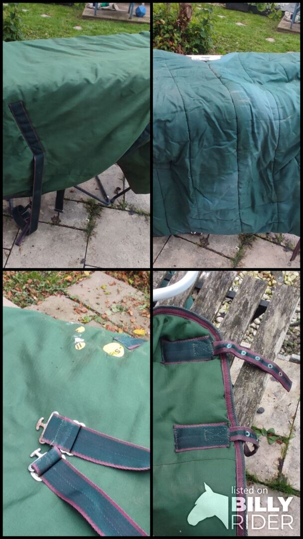 Sprzedam grubszy dywanik stajenny ze sznurkami na nogi. Według metki na dywaniku powinien mieć rozmiar 125 cm. Zmierzyłam go też jeszcze raz składaną miarką i długość wyniosła 127 cm.