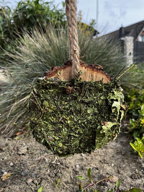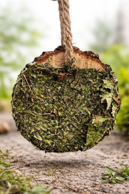 Ten ręcznie wykonany dysk do skubania oferuje koniowi naturalną aktywność i zapewnia urozmaicenie w stajni, stajni otwartej lub na padoku. Drewniany dysk ma zioła po obu stronach i można go łatwo zawiesić.