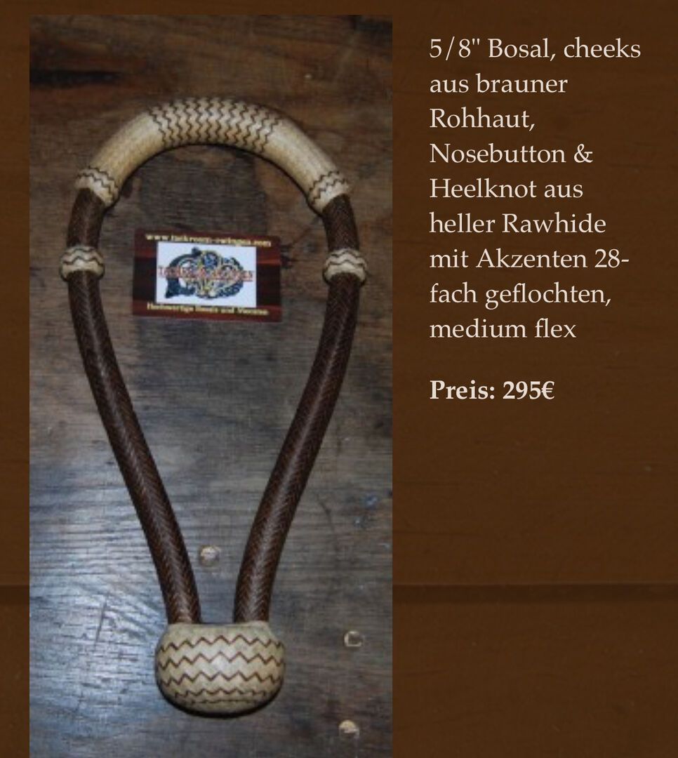 Your opinion on the product 'Tackroom Ratingen 5/8 Bosal mit Hänger und Alpaka-Mecate' counts! Help others make their decision – share what you liked (or didn't)!