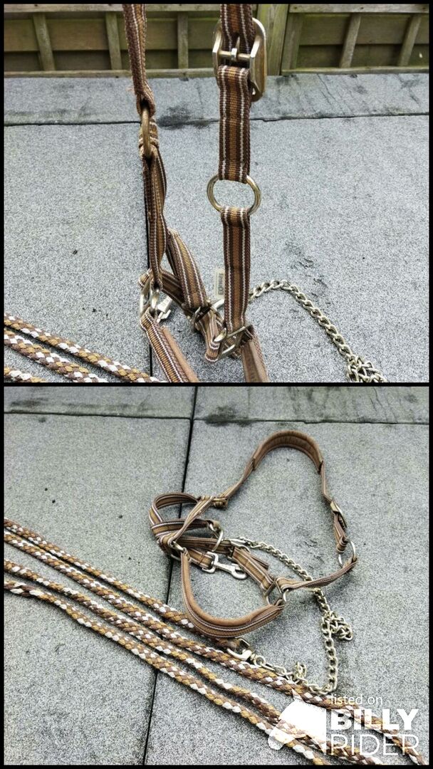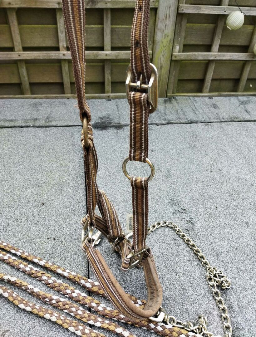 Halfter braun in der Größe Full/WB mit Führkette und Strick