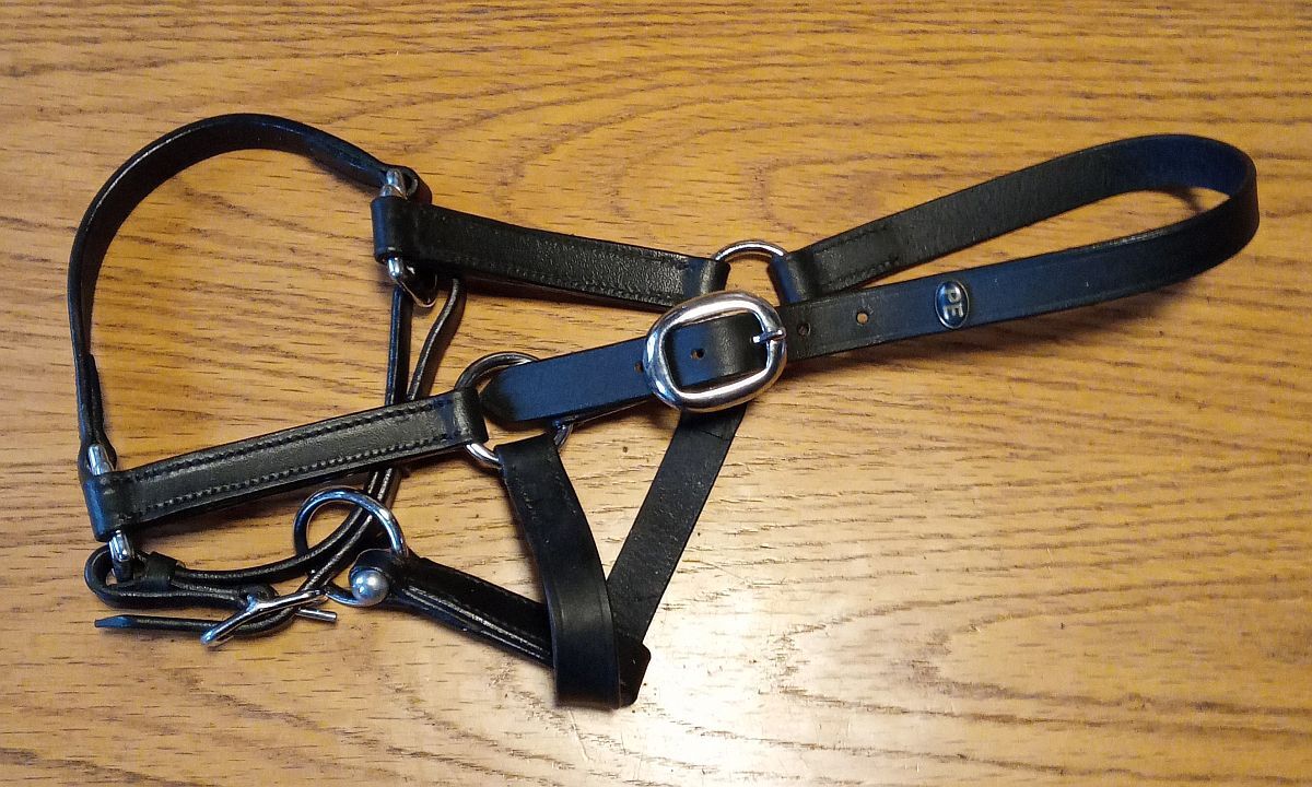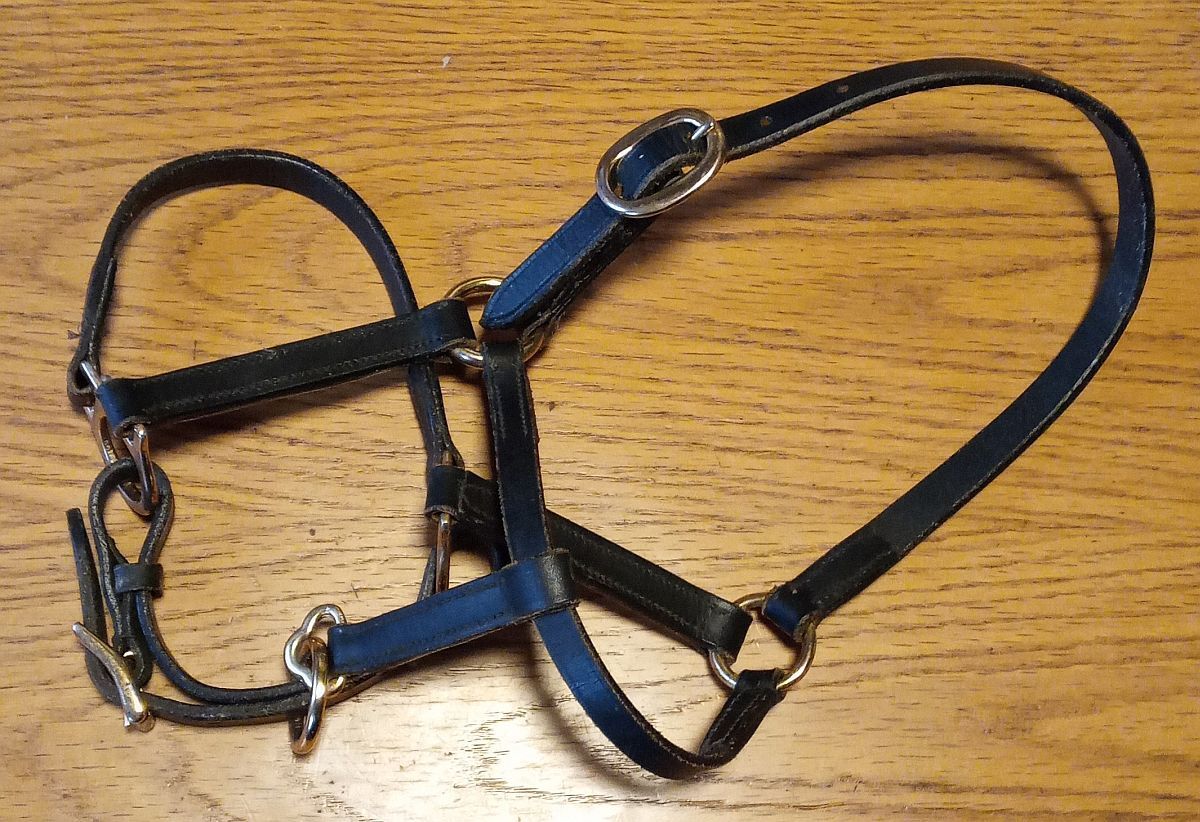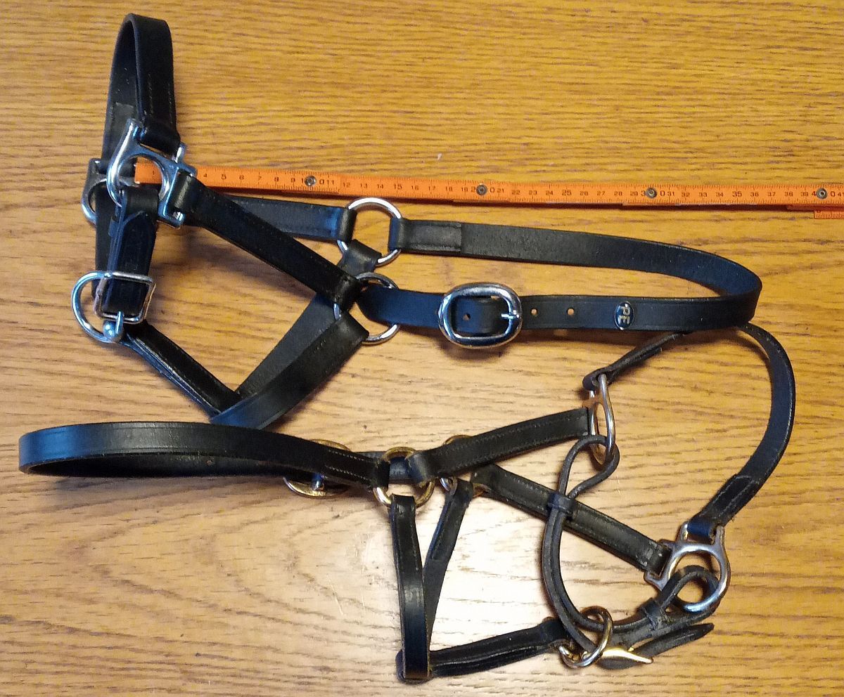 Halter dla źrebaka, 2x skóra + 2x nylon - na sprzedaż 4 haltery dla źrebiąt, jak nowe, powinny również pasować do minishetty.