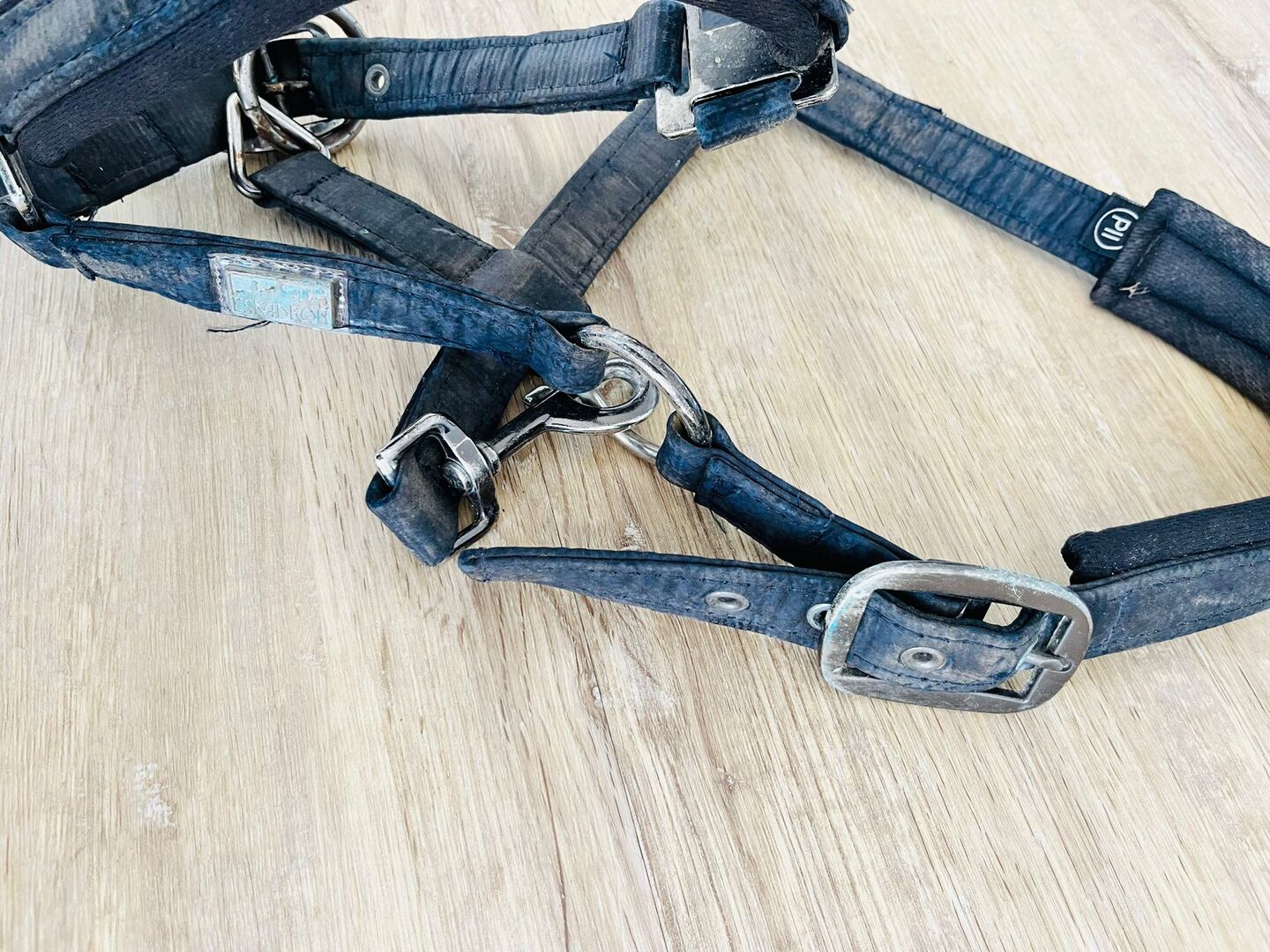 Halter / ESKADRON / PII - Sprzedaję halter od mojego kucyka, marki Eskadron. Posiada ona rozmiar PII. Idealnie pasuje na mojego walijskiego A. Jest dobrze zużyta, ale brud można jeszcze z niej zmyć.