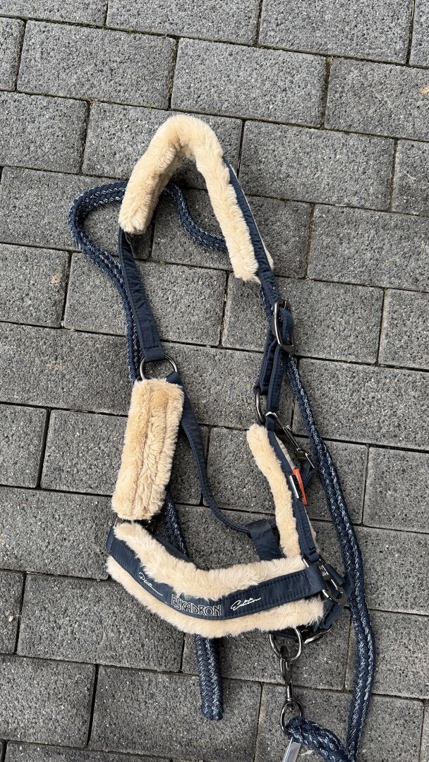 Halter Eskadron w WB - Sprzedaję halter Eskadron z kolekcji Platinum w kolorze granatowym (lina w komplecie :)). Halter był założony tylko 3 razy i nie nosi prawie żadnych śladów użytkowania.