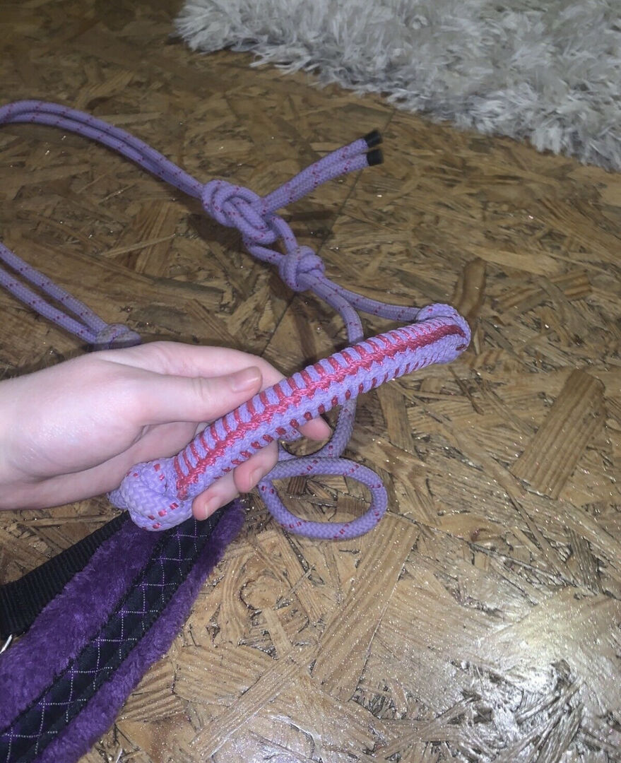 Halter i węzeł Halter - Sprzedam te dwie haltery w dobrym stanie. Fioletowa halterka została przymierzona tylko raz, a halterka z węzełkami została użyta tylko raz. Koszt wysyłki wyniósłby pięć euro. Razem za oba chciałbym otrzymać 25 euro.