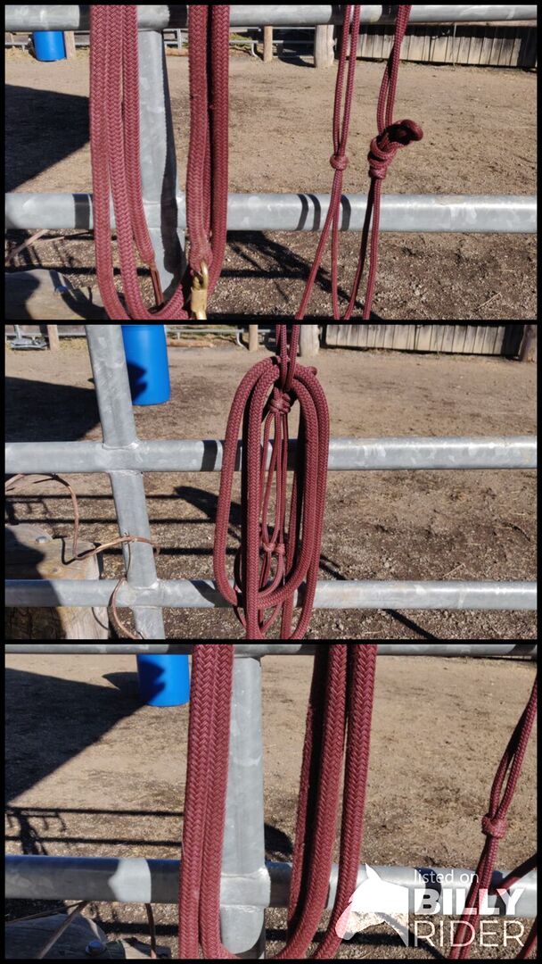 Halter węzłowy + lina do ćwiczeń na ziemi - Halter węzłowy rozmiar WB z pasującą liną do prac ziemnych o długości 3,7 m z karabińczykiem obrotowym. Oba od brockampa w jakości Profitrainer. halter 20 lina 25