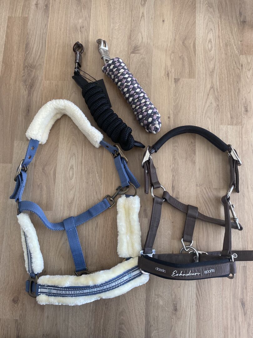Halter z linką - Sprzedam halter Eskadron w rozmiarze Pony (P2) + lina i halter Felix Bühler w rozmiarze C (mały koń) jako zestaw: 30€ Można również kupić pojedynczo na życzenie Sprzedaż prywatna, bez gwarancji i rękojmi.