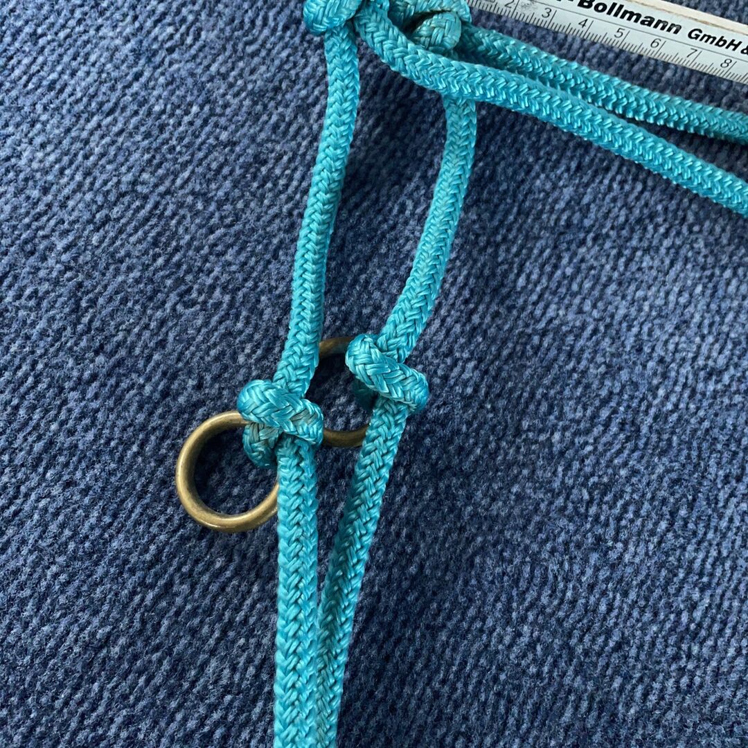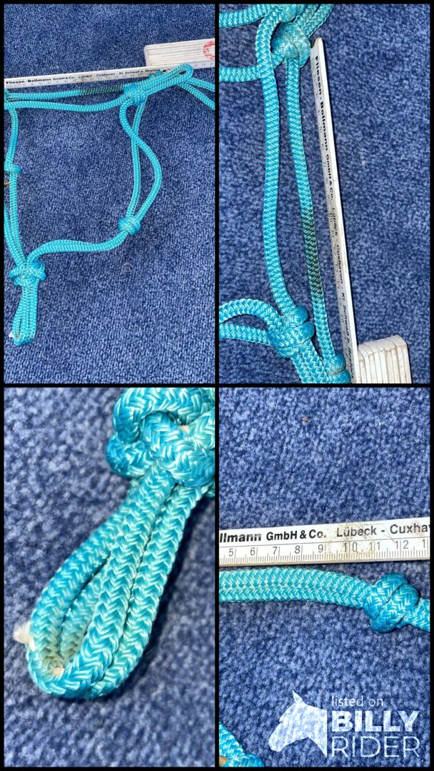 Türkisfarbenes Reithalfter mit Gebrauchsspuren