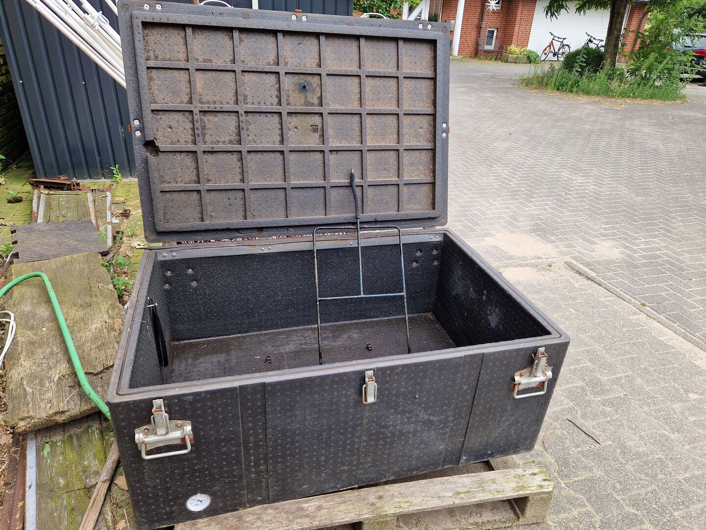 Sprzedaję parowar na siano. Duże pudełko pochodzi z Heumaster, a kuchenka z Haygain. Pudełko jest nienaruszone. Tylko jeden róg jest odłamany. Ale to nie ma wpływu na jego działanie. Haygain jest uszkodzony. Nie mogę dokładnie powiedzieć, co jest uszkodzone. Prawdopodobnie spirala grzewcza. Jeśli wiesz o tym, z pewnością możesz to naprawić lub zlecić naprawę. Dla nas nie było to już opłacalne ze względu na zmianę stajni. Ilość siana wystarczała dla 1 konia na 24 godziny. Mieliśmy 2 konie, które zimą miały mieć siano dostępne 24/7. Więc parowaliśmy 2 x. Według producenta pojemność wynosi około 320 litrów. Wystarczyłoby to na 22 kg siana w związanych belach HD lub ok. 16-18 kg siana luzem. Rzeczywista ilość napełnienia zależy od jakości siana.