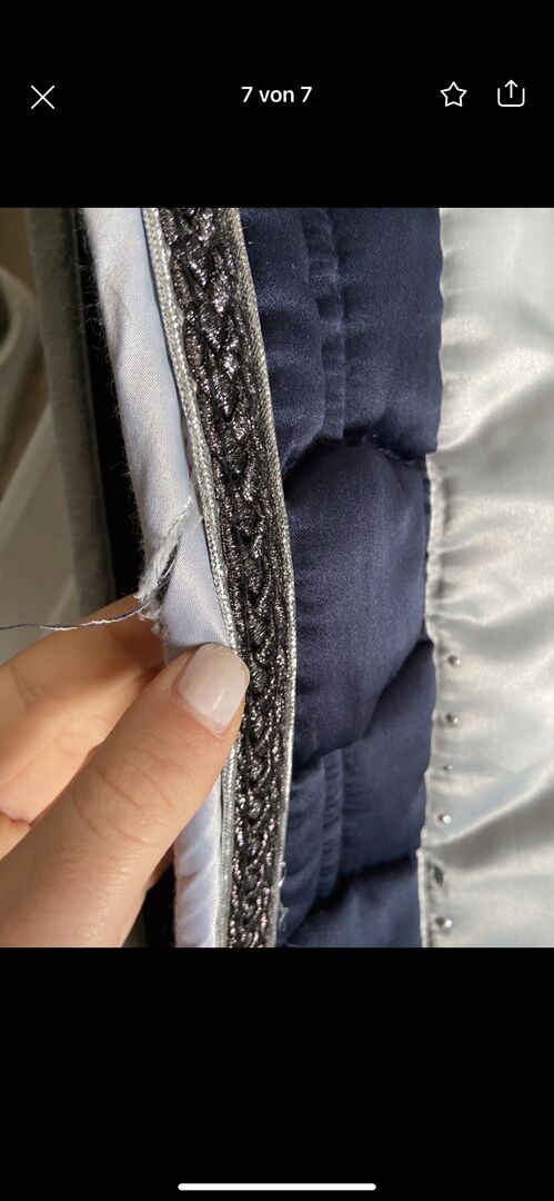 HB Polo Saddle Pad DR navy glitter - Ma małą dziurkę po prawej stronie z tyłu, którą łatwo można ponownie przyszyć:)