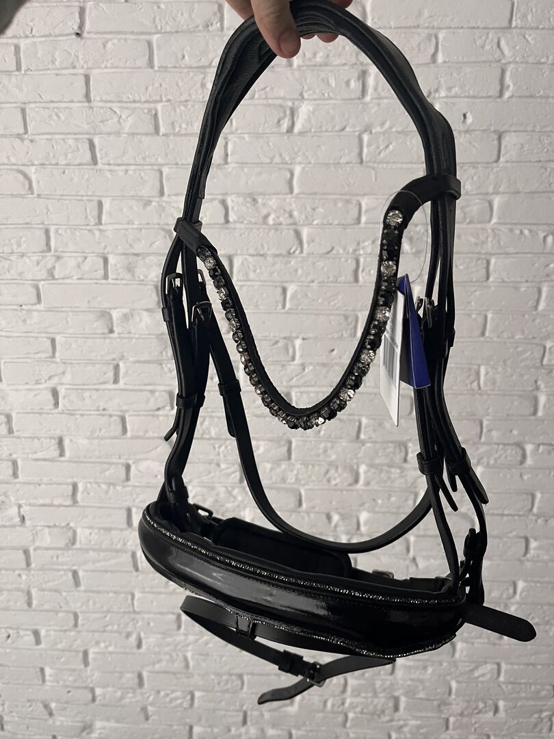 HB Snaffle WB/Full - To wędzidło zostało specjalnie opracowane z anatomicznie miękką wyściółką i ściętym naczółkiem. Naczółek. Nagłówek ma kształt zmniejszający nacisk za uszami i na głowę. Opaska na nos ma jeszcze bardziej anatomiczny kształt. Dzięki temu dopasowanie jest jeszcze lepsze, co zmniejsza nacisk na nos. Opaska na brwi jest specjalnie wykonana z dużymi kamieniami Swarovskiego. Z miękkimi skórzanymi paskami.