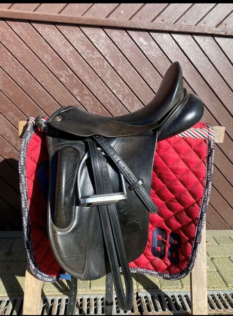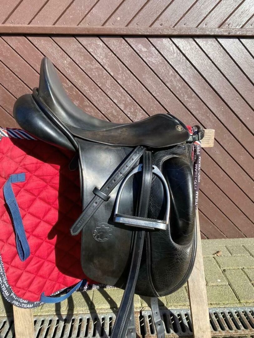 Na sprzedaż jest używane, ale bardzo dobrze zachowane siodło ujeżdżeniowe firmy Henning. Siedzisko szacuję na 17,5", po dalsze pomiary zapraszam na zdjęcia. Odnowione zostały pasy przepasujące. W cenę wliczony jest pas Henninga (wymiary również na zdjęciach) oraz podkładka pod siodło Henninga.