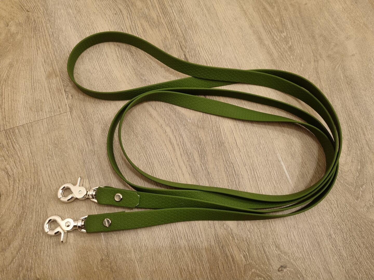 Opis producenta: HEXA Coated Webbing. Ta powlekana taśma wykonana jest z plastiku PVC (polichlorku winylu) i jest bardziej wytrzymała, łatwiejsza do czyszczenia, mocniejsza i łatwiejsza w utrzymaniu niż konwencjonalna taśma tekstylna. Jest popularny w obrożach dla psów, smyczach, halterach dla koni i uzdy.