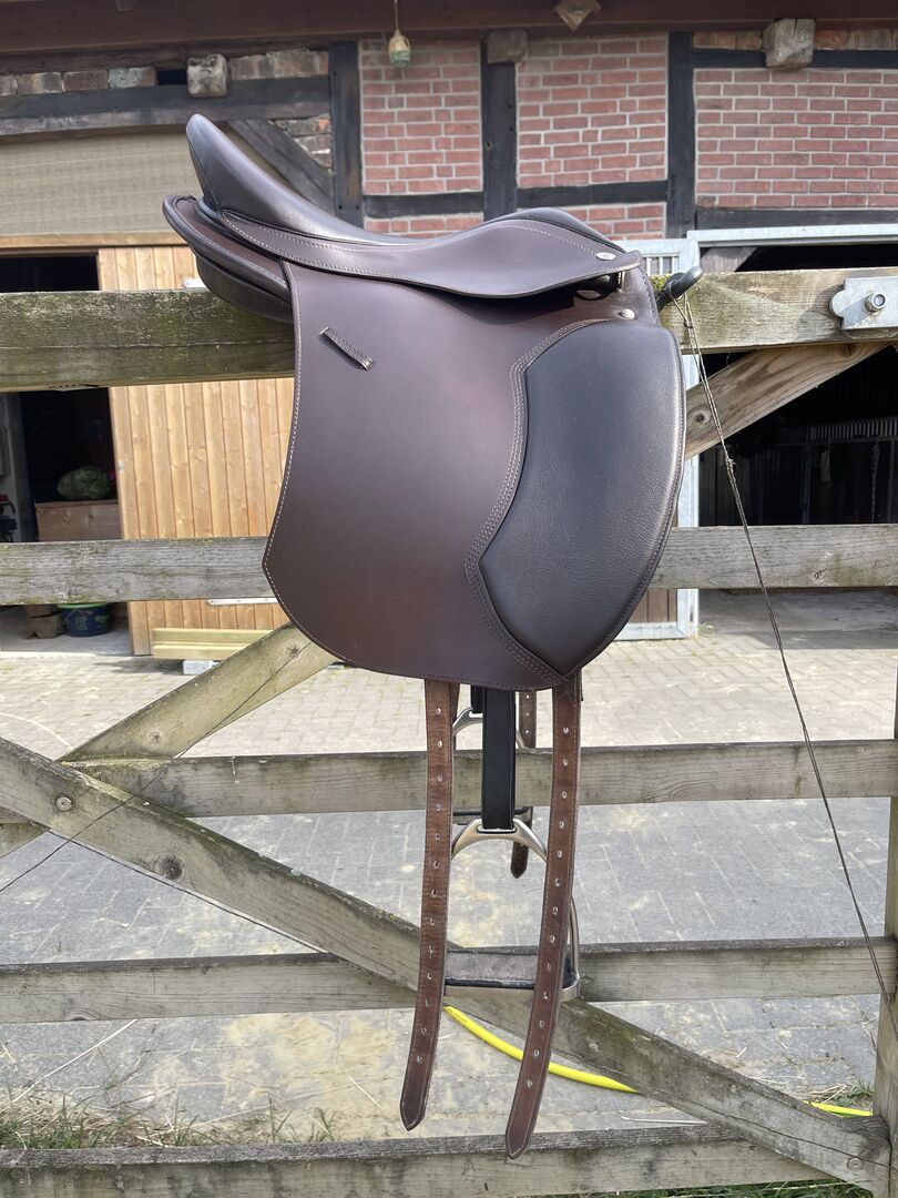 Hidalgo London Special 17,5 - Skórzane siodło Gidalgo można dostosować do niemal każdego konia dzięki panelom Velcro i skórzanemu łękowi. Jest bardzo krótkie i siedzi na jeźdźcu wąsko - w przeciwieństwie do niektórych siodeł dla szerokich koni. Jest zgodne z FN!