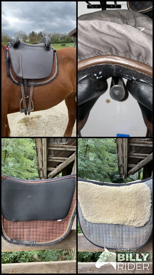 - Kupione nowe jesienią 2022 roku - mniej niż 10 razy na koniu - z czego ok. 5 razy krótko jeżdżone - dlatego skóra (panele) jeszcze nie osiadła i należy ją uznać za tak dobrą, jak nowa - Brązowa gładka skóra ze srebrnymi okuciami - Rozmiar 33 (szacowany na 17,5 cala w reklamie) - panele 43 cm - oryginalny pokrowiec na siodło w zestawie - przechowywane nieużywane przez rok w suchym i zabezpieczonym przed kurzem miejscu - siodło było delikatnie przechowywane na szynie siodła, aby uniknąć naprężeń paneli