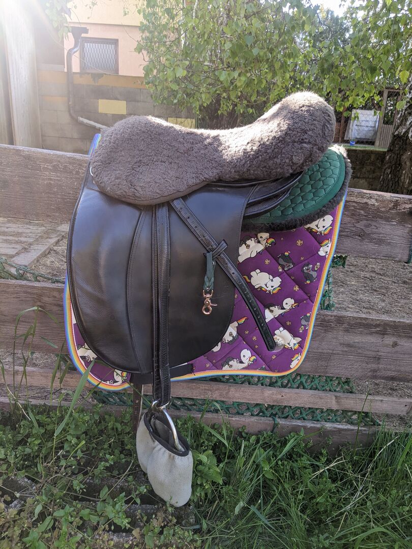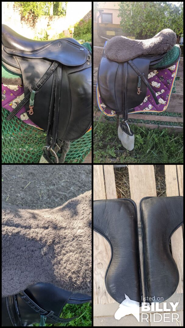 V-girth otwarte mocowanie strzemion Siodło nie ma płyty wpustowej, dopasowuje się do grzbietu konia i rośnie wraz z nim, dzięki czemu można je dostosować do prawie każdego konia. Rolki kolanowe na rzepy