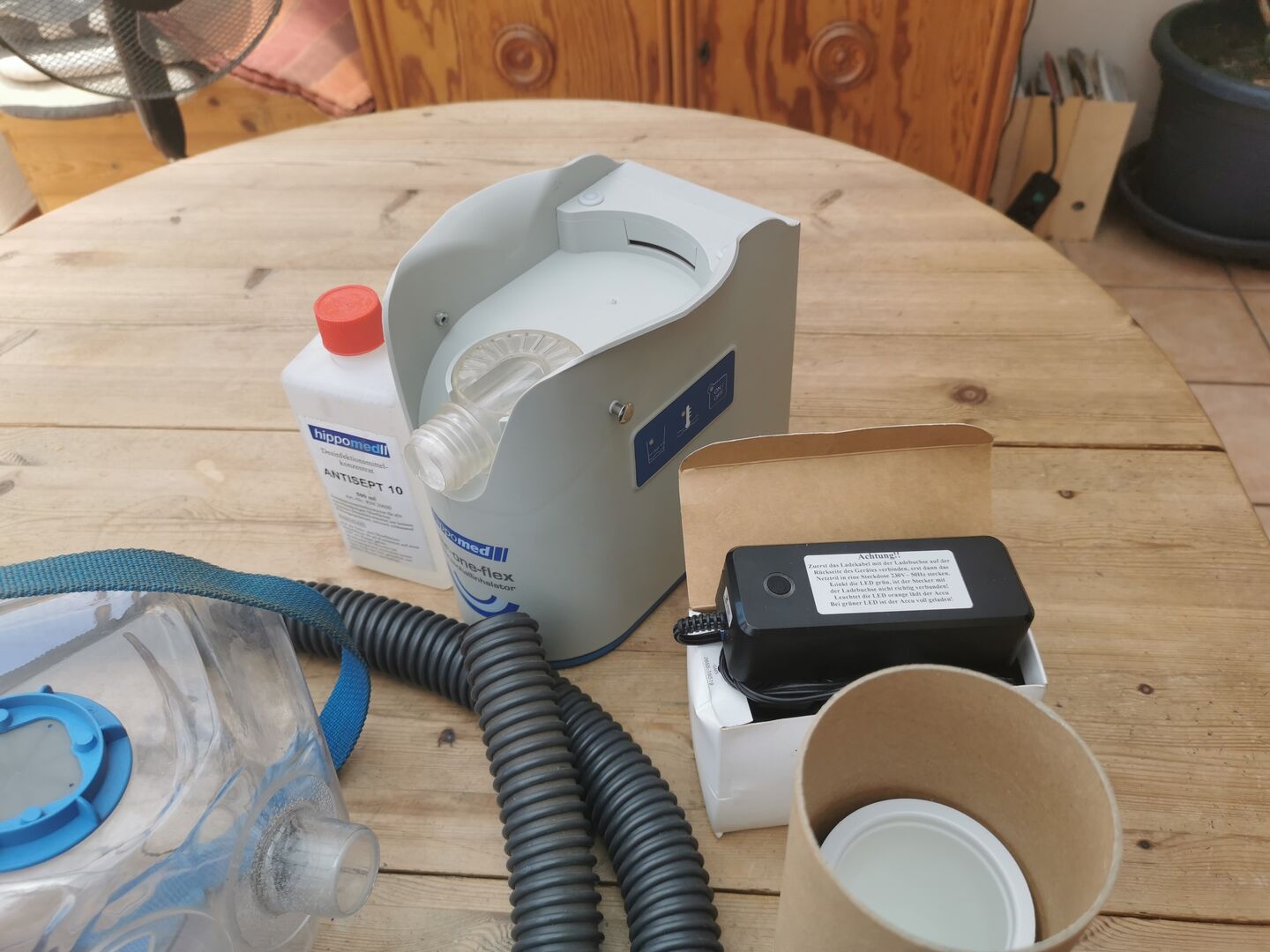 Inhalator został kupiony latem 2020 i nie był zbyt często używany, kucyk miał problemy z maską i zmieniliśmy urządzenie na inne. Maska jest przeznaczona dla koni zimnokrwistych. Urządzenie zawsze było suche i jest w dobrym stanie jak na swój wiek.