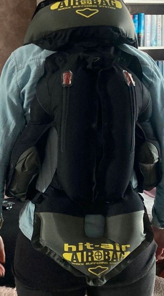 Hit Air Cross Country, lekka kamizelka ochronna ze zintegrowaną poduszką powietrzną! Poduszka powietrzna w modelu "Cross Country" jest jeszcze większa niż w innych naszych kamizelkach z poduszką powietrzną, dzięki czemu zapewnia dodatkową ochronę. Model ten zachwyca również swoją lekkością i związanym z nią komfortem noszenia. Kamizelka została wyposażona w odblaskowe kropki. Obszar szyi jest lekki i miękko podszyty, a nylonowy materiał zewnętrzny 500 D sprawia, że kamizelka jest wyjątkowo wytrzymała.