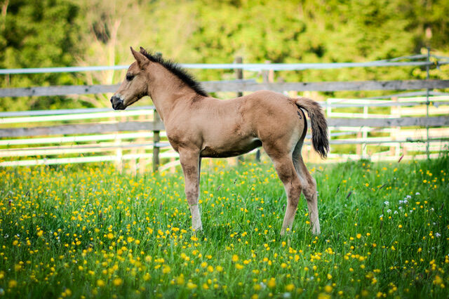 Hodowany w fundacji, piękny ogier rasy Quarter Horse - Lokalizacja: 53949 Dahlem QB Peanut King Sail - obiecujący, piękny ogier rasy Quarter Horse, urodzony w 2025 roku, już przekonuje swoją piękną i stabilną budową, wspaniałym kolorem Dun i uroczą naturą. Osiągnie ostateczny wzrost ok. 150 cm. Ogier jest w 92% hodowli fundacyjnej. Peanut będzie dorastał z innymi młodymi końmi w otwartej stajni w optymalnych warunkach, jest już zaznajomiony z weterynarzem i kowalem, a w momencie przekazania zostanie zaszczepiony i odrobaczony zgodnie ze swoim wiekiem. Ogier jest 6-panelowy n/n. Jest milutki, ciekawski i bardzo zorientowany na ludzi w codziennym kontakcie. Zna źrebięce ABC, jest wyszkolony w halterze i jest codziennie obsługiwany. Jego wspaniały charakter i dobry ruch sprawiają, że Peanut jest obiecującym młodym koniem - zarówno do rekreacji, jak i sportu. Będzie sprzedawany z papierami AQHA i NFQHA.