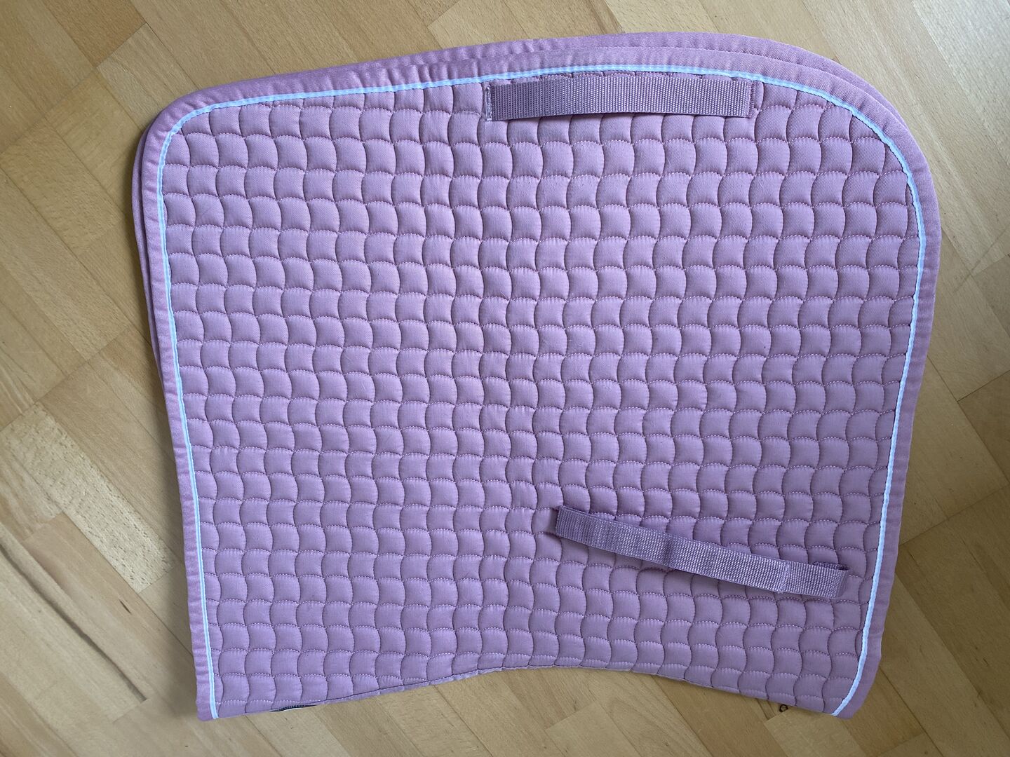 Najlepszy stosunek ceny do jakości! Pięknie wykonana, anatomicznie ukształtowana podkładka pod siodło z małym okienkiem pikowania i ozdobną lamówką. Z pętlami do pasów i regulowanymi na rzepy pętlami do uzdy. Nadaje się szczególnie jako podkładka pod siodło klubowe do haftowania, jak również do codziennego użytku.