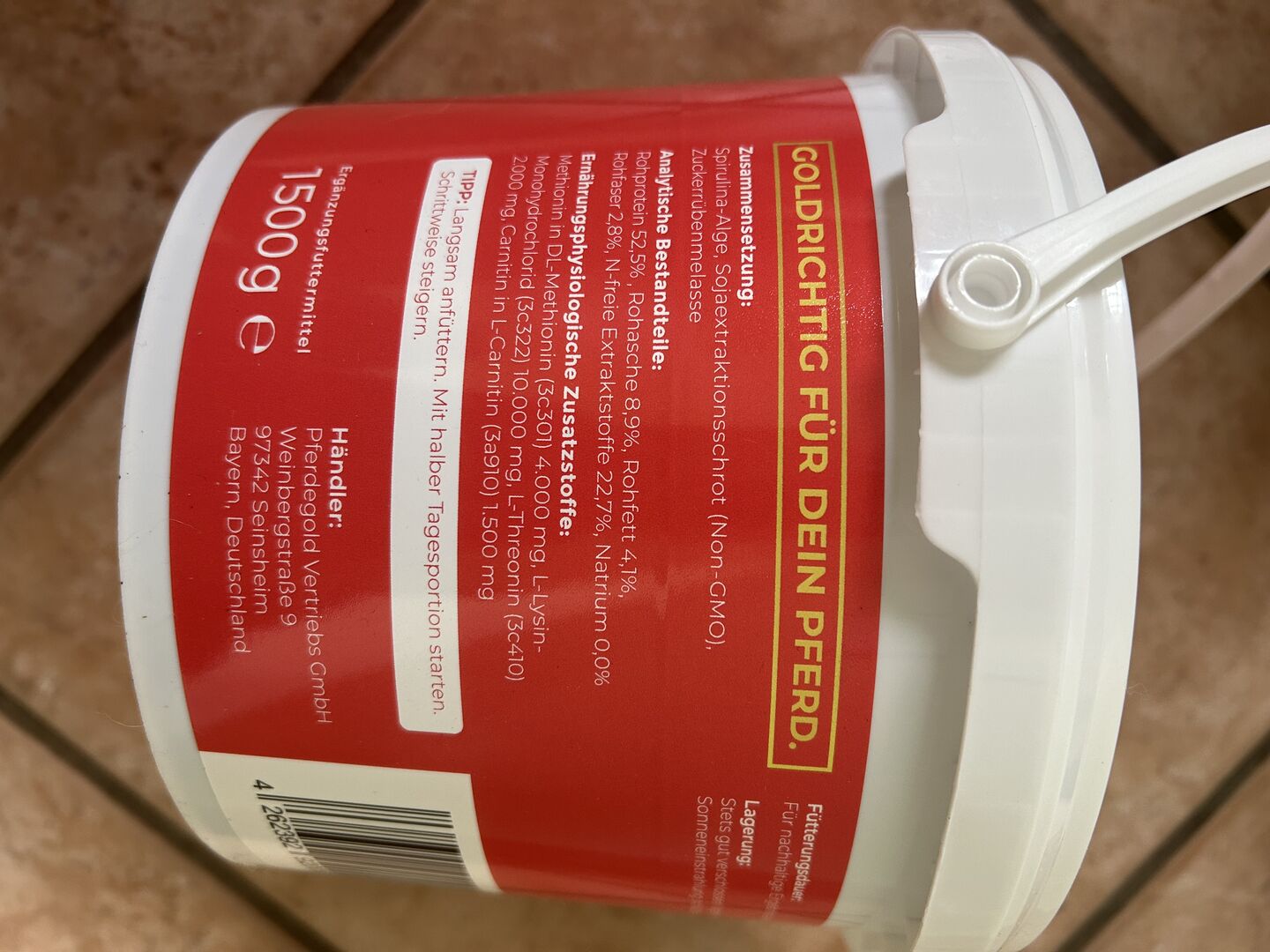 Horse Gold Muscle Nowy, nieotwarty - Nowe i oryginalnie zapakowane złoto końskie w wiaderku 1,5kg. MHD patrz zdjęcie. Dostępne są trzy wiadra. Cena za wiadro 75€ Od zakupu 2 wiader jest 5% zniżki.