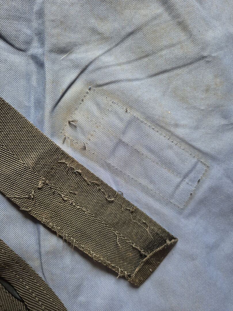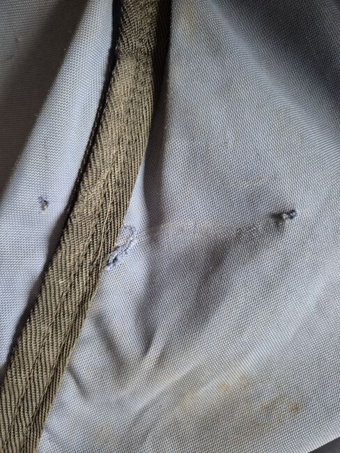 Dywanik jest szczelny, wewnętrzna podszewka jest nieuszkodzona, a wypełnienie jest nadal na swoim miejscu. Minimalne ślady skubania i mała dziura w zewnętrznej tkaninie (patrz zdjęcia). Jeden pasek na brzuch jest oderwany i można go przyszyć 1:1, ponieważ wszystko jest nienaruszone (patrz zdjęcia).
