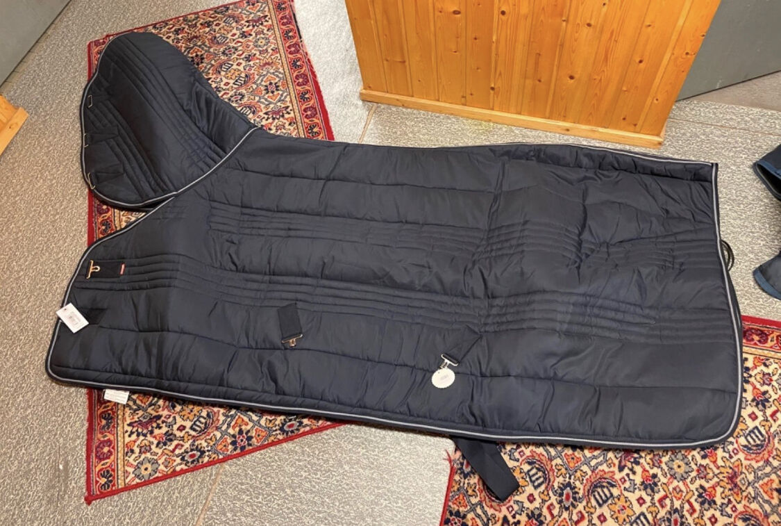 Horze koc stajenny/podkład 300g Gr.145 - Z powodu rezygnacji z jazdy konnej sprzedaję moją nową derkę stajenną Horze 300g w rozmiarze 145cm. Dywan jest całkowicie nowy. Oryginalna cena wynosiła 70€.