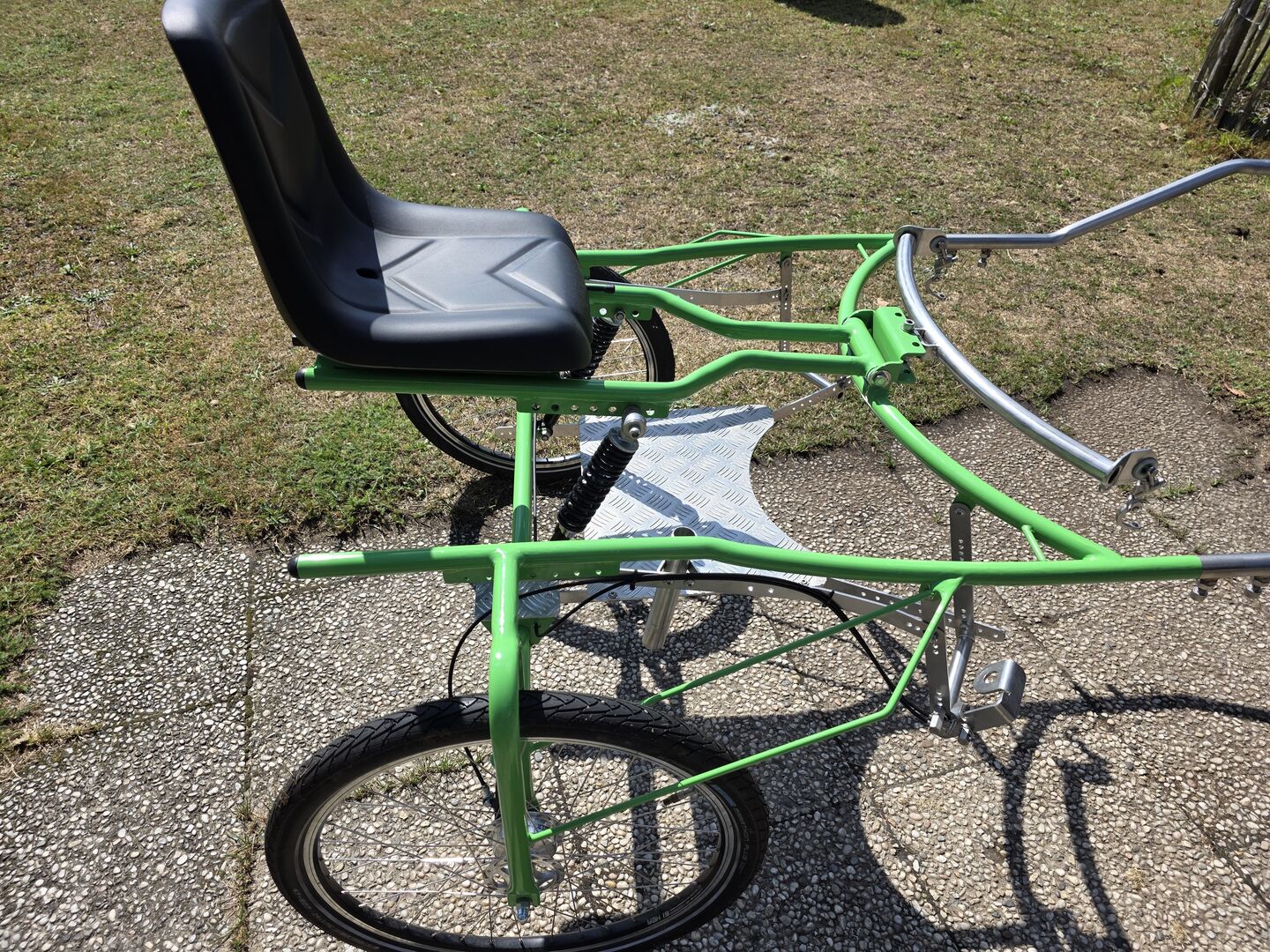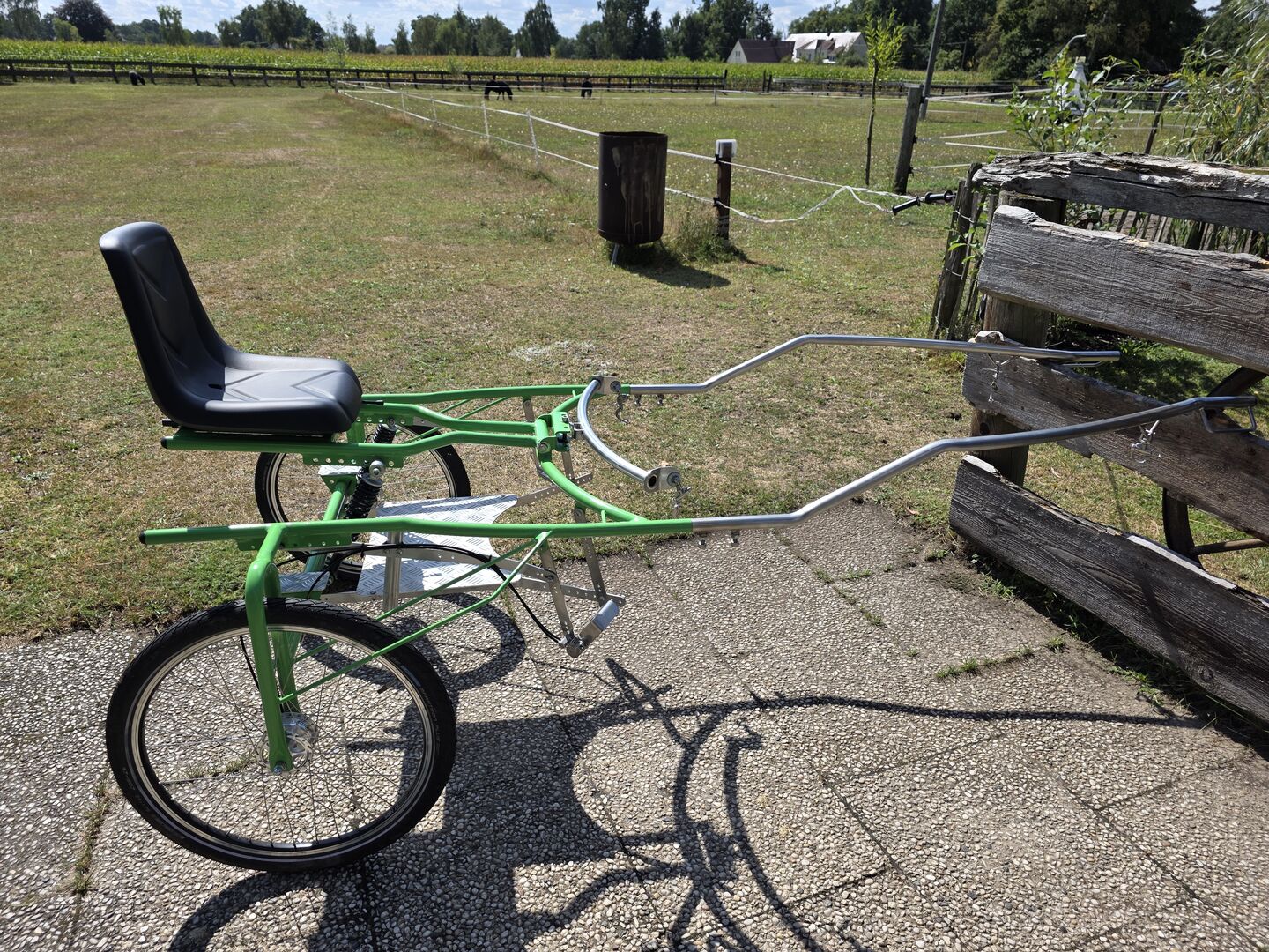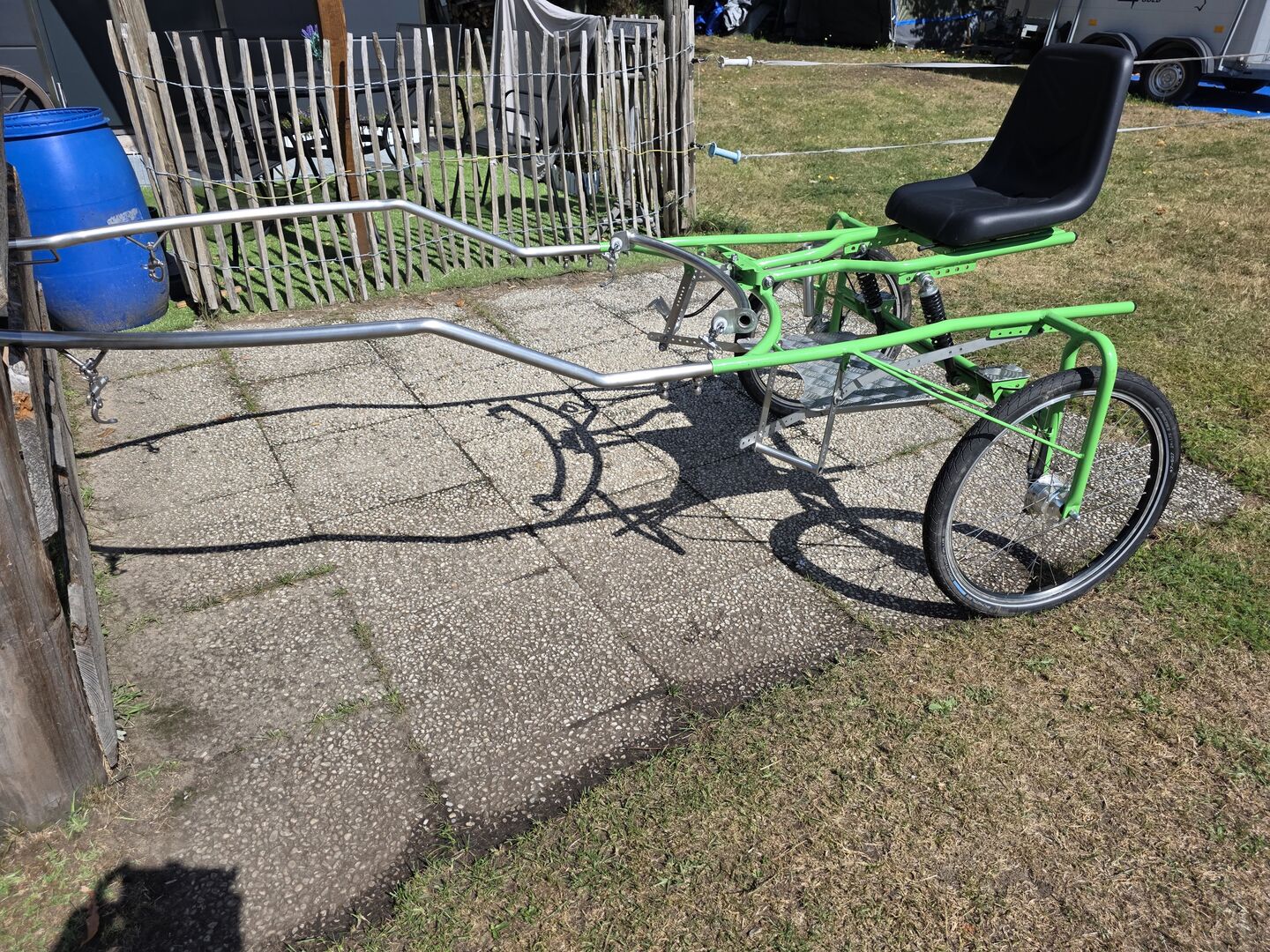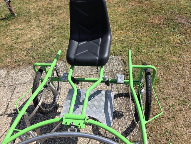 Hülsmann sulky 24 cale - Na sprzedaż jest super sulky firmy Hülsmann. Sulky został kupiony jako nowy w kwietniu 24 roku i nie był zbyt często używany. Został zbudowany dla Shetty o wzroście 1,05 m. Rozstaw kół 1,10 m.