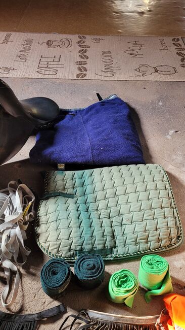 Huge Equestrian Package Saddle Cadet Saddle Pad - Equestrian Package Horse Accessories Warmblood Saddle Cadet Blanket. W związku z rezygnacją z jazdy konnej sprzedaję swoje rzeczy Dobrze utrzymane siodło VS, czarne, skórzane firmy KADETT. 17,5 cala. Średnia szerokość przełyku. Obwód 140 cm Dywanik potowy rozmiar 155 Podkładka pod siodło Bandaże +3 podkładki Różne getry od BR Eskadron Skarpetki rozmiar 38 Frędzle na muchy Uvm Sprzedaż prywatna bez gwarancji i zwrotu