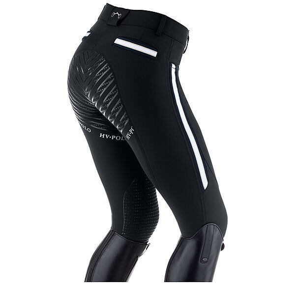 Funkcjonalne, elastyczne bryczesy damskie z wieloma detalami. Wodoodporna, oddychająca i szybkoschnąca. Innowacyjne wykończenie silikonowe na siedzisku i kolanach. Nadruk HV POLO z boku, taśmy w kontrastowych kolorach, elastyczny pas, 2 przednie kieszenie wsuwane, innowacyjne elastyczne zapięcie nogawek bez rzepów.