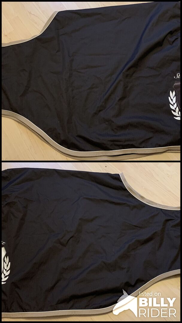 HV Polo Dywanik jeździecki 145 - Derka jeździecka z podszewką z miękkiego polaru firmy HV Polo. Rozmiar koca wynosi 205 cm, co odpowiada rozmiarowi 145. Dywan jest używany, ale w doskonałym stanie.