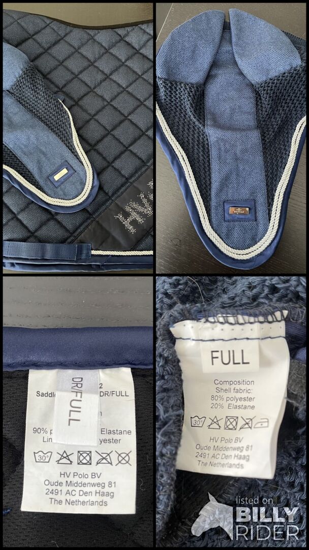 Sprzedaję zestaw polo firmy HV - Nina w kolorze navy. Podkładka pod siodło jest w rozmiarze dressage/full, a maska na muchy w rozmiarze full. Podkładka pod siodło była na koniu dwa razy, a maska na muchy tylko przymierzona.