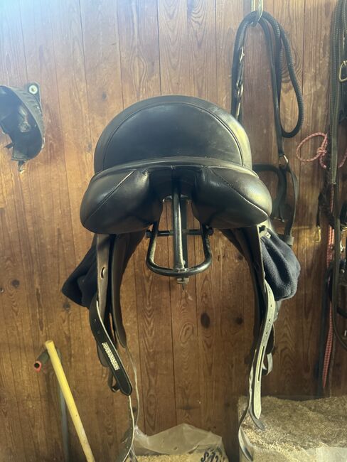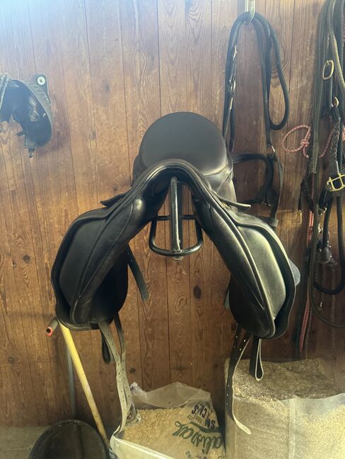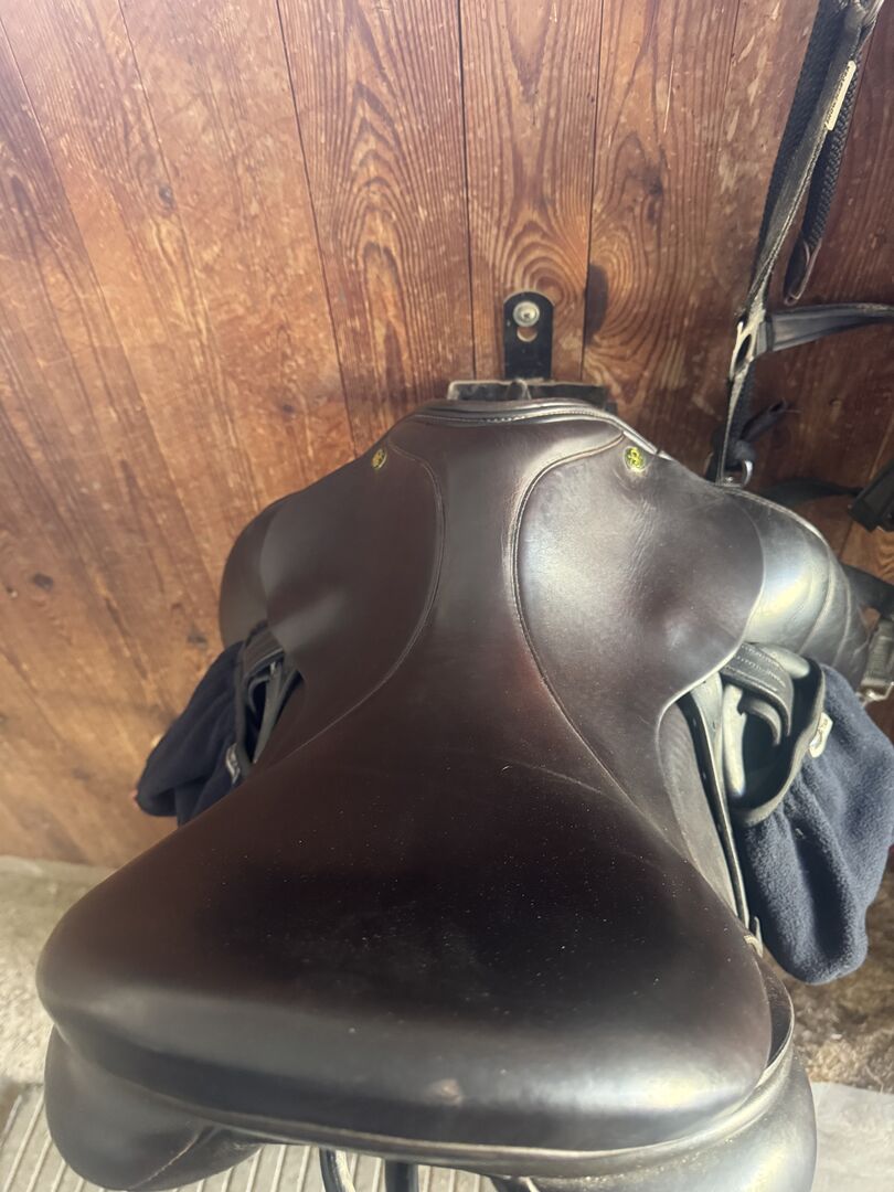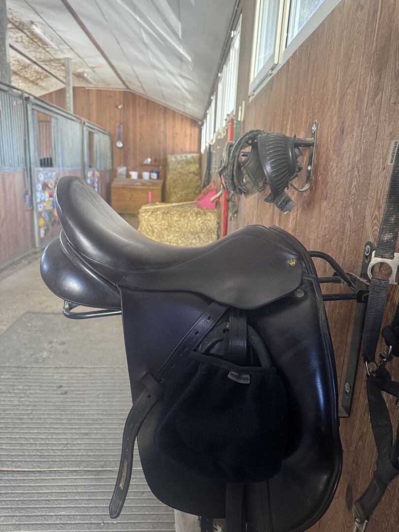 Idealne siodło ujeżdżeniowe d.brown 17,5 cala - Na sprzedaż jako nowe idealne siodło ujeżdżeniowe w kolorze ciemnobrązowym 17,5 cala. Jest zadbane i było używane tylko około 10 razy. :) Pasuje na WB & Fribi.