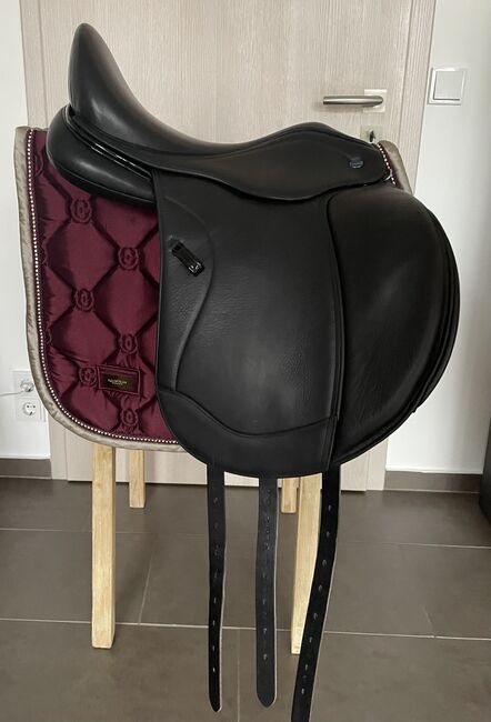 Siodło zostało zakupione jako nowe wiosną 2024 roku, a następnie prawie nie było używane. Jest naprawdę w doskonałym stanie z minimalnymi śladami zużycia. Posiada 3 paski do popręgu z każdej strony i duże klocki na rzepy.