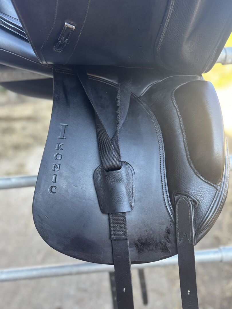 IKONIC Siodło ujeżdżeniowe EVOD03 - 17,5 cala - Najlepszy stan - Sprzedam moje siodło ujeżdżeniowe IKONIC model EVOD03 w kolorze czarnym. Siodło było bardzo zadbane i jest w dobrym stanie z niewielkimi śladami zużycia.