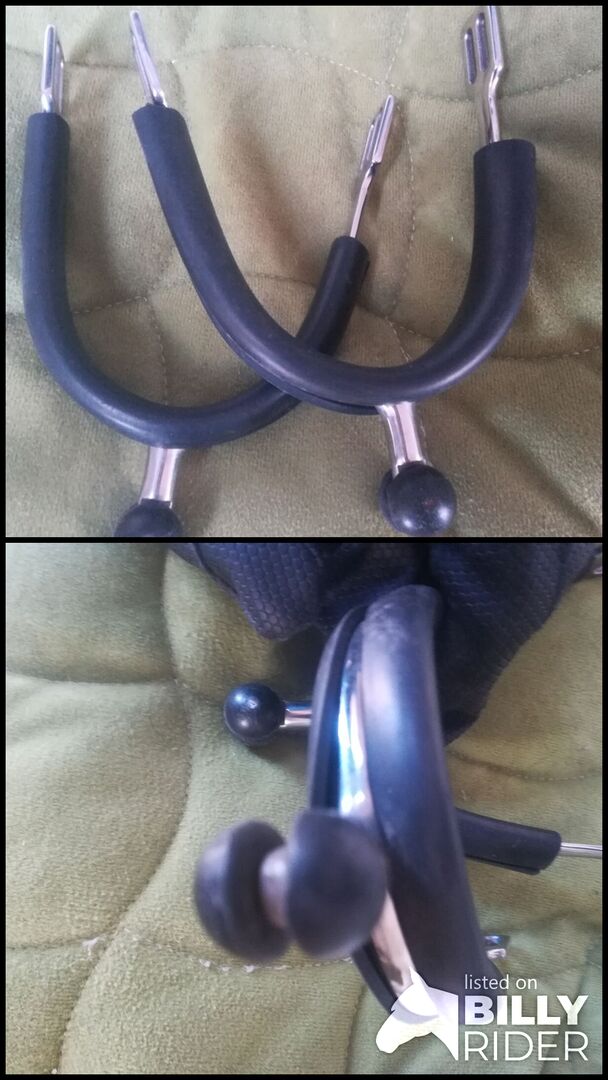 Ostrogi impulsowe 2 szt. wykonane ze stali nierdzewnej z rolkami przymocowanymi do szyjki ostrogi Wykonane ze stali nierdzewnej ostrogi impulsowe zapewniają delikatną, ale bezpieczną pomoc. Rolki przymocowane do szyi ostrogi przesuwają się po ciele konia i wyzwalają delikatne impulsy. Bez ostrogi.