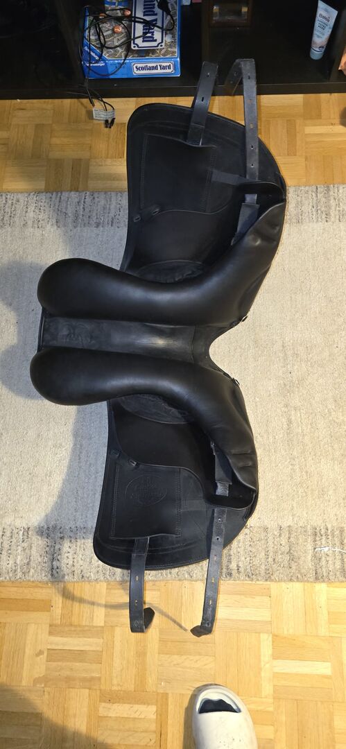 Siodło zostało zakupione kilka lat temu i zawsze było starannie pielęgnowane i przechowywane. Ma głębokie siedzisko, dzięki czemu zapewnia bardzo bezpieczne i wygodne wrażenia z jazdy.