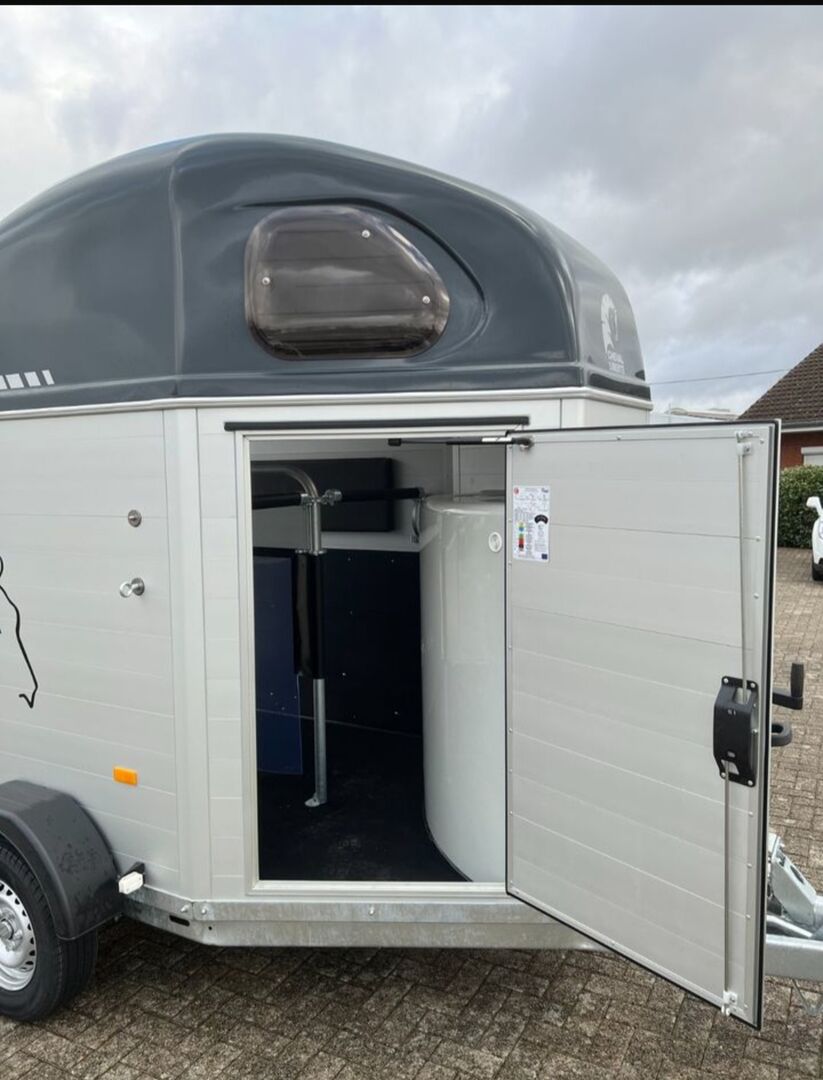 Nasza nowa przyczepa do przewozu koni oferuje wystarczająco dużo miejsca dla 2 dużych koni i jest w pełni wyposażona: