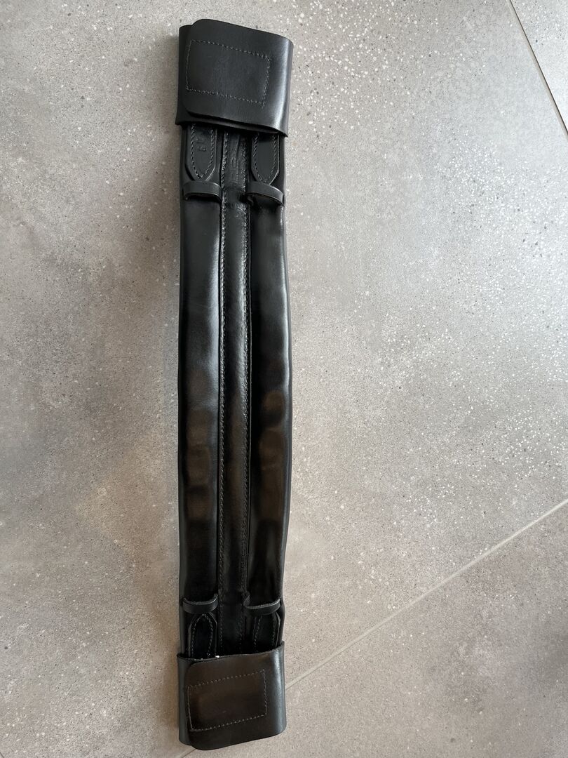 Jak nowy skórzany krótki popręg STÜBBEN 60 cm czarny - Na sprzedaż nowy skórzany krótki popręg / skórzany popręg siodłowy z zakrytymi klamrami firmy STÜBBEN w kolorze czarnym, długość 60 cm