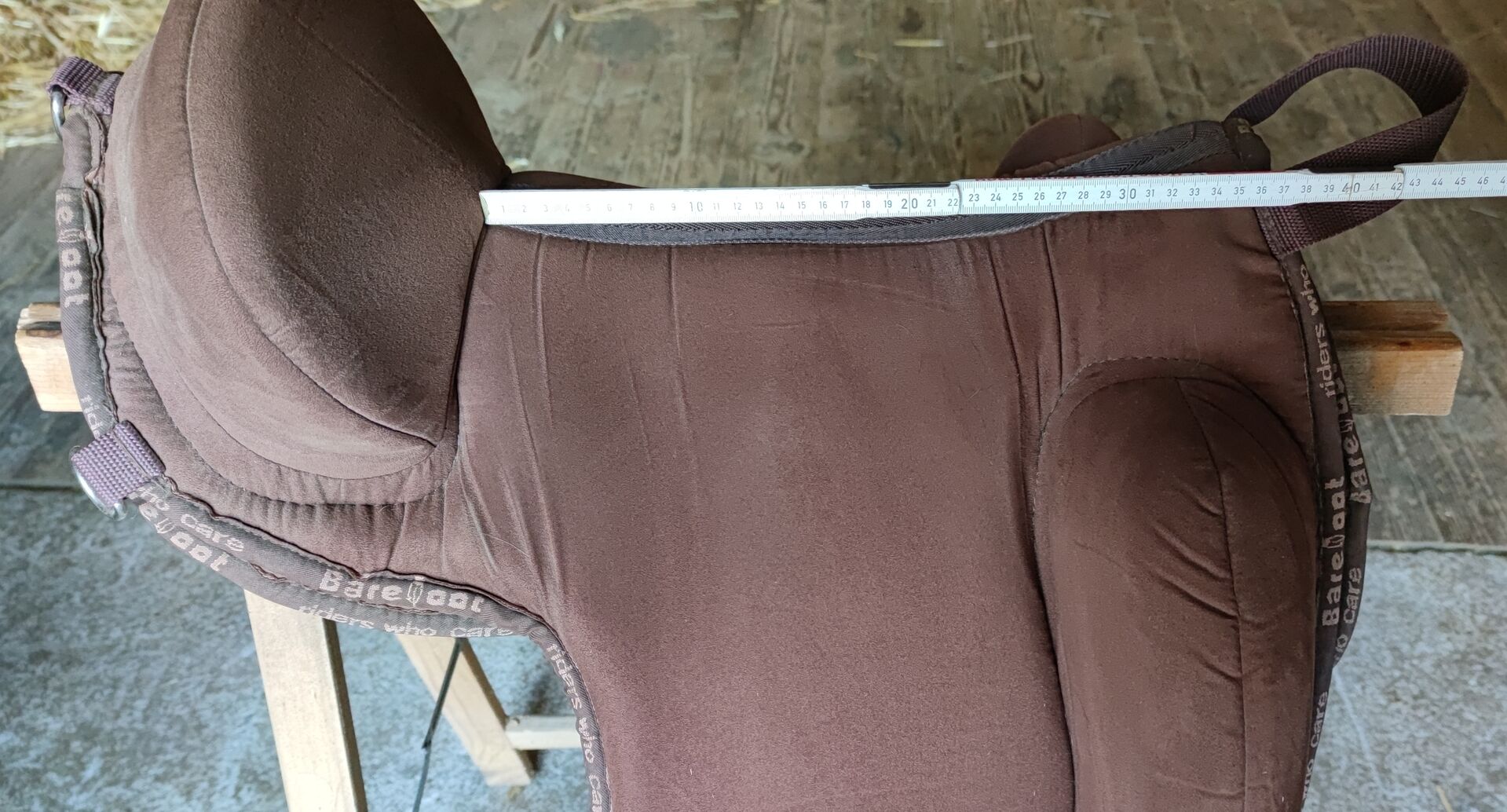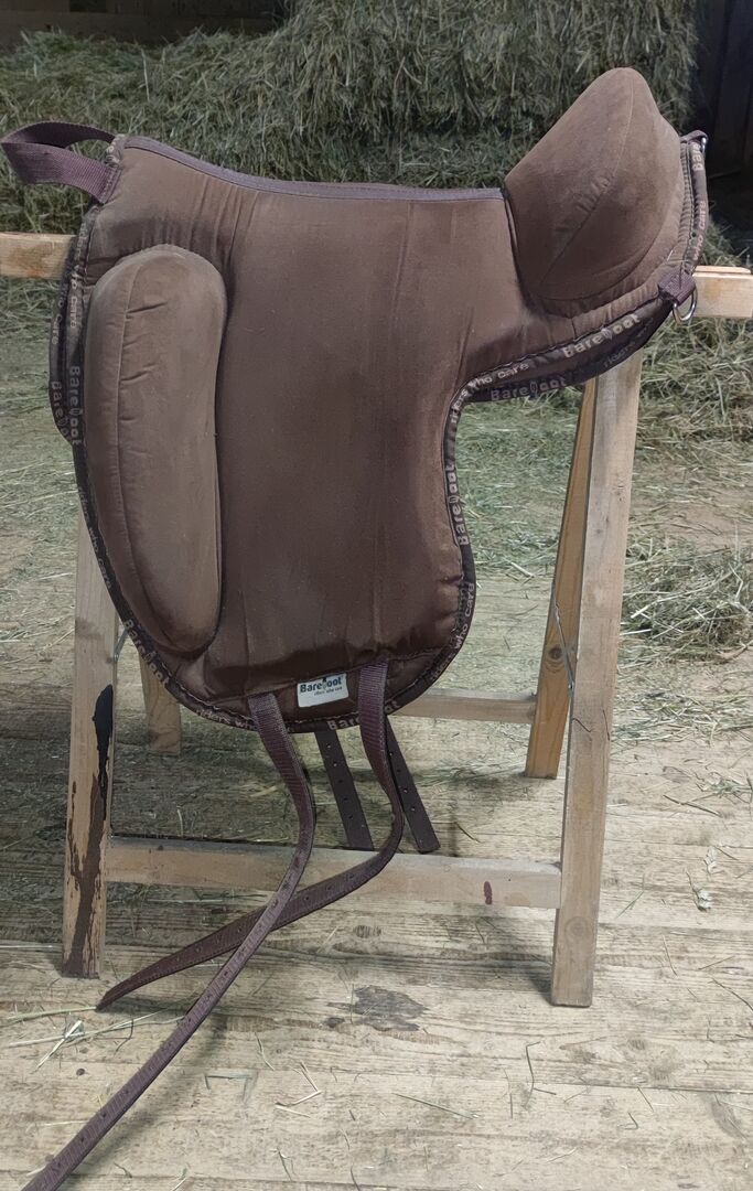 Specyfikacja producenta: Podkładka Barefoot® "Ride-on-Pad Physio Support" z pomponami dającymi podparcie i obramowującymi. Duże pomki bezpiecznie ograniczają nogę jeźdźca do przodu, a miękkie i wysokie obramowanie siedziska zapewnia wsparcie do tyłu.