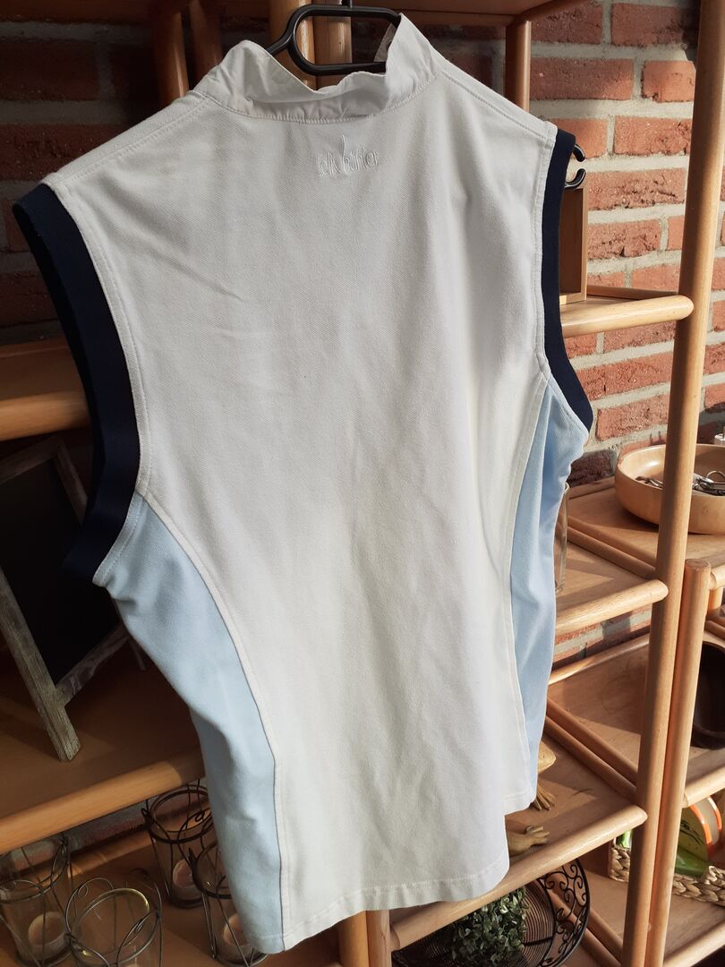 Jeździecki top z dniami stojącymi - Top jeździecki bez rękawów ze stójką i zatrzaskami, dżersej z jasnoniebieską wstawką