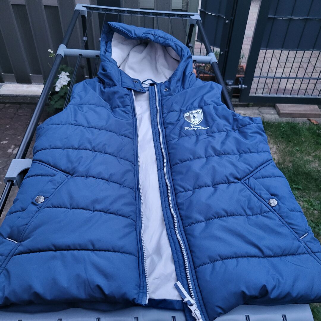 Kamizelka jeździecka - Sprzedaję nową kamizelkę jeździecką, którą przymierzyłem tylko raz w eleganckim niebieskim kolorze z jasnoszarym materiałem wewnętrznym.