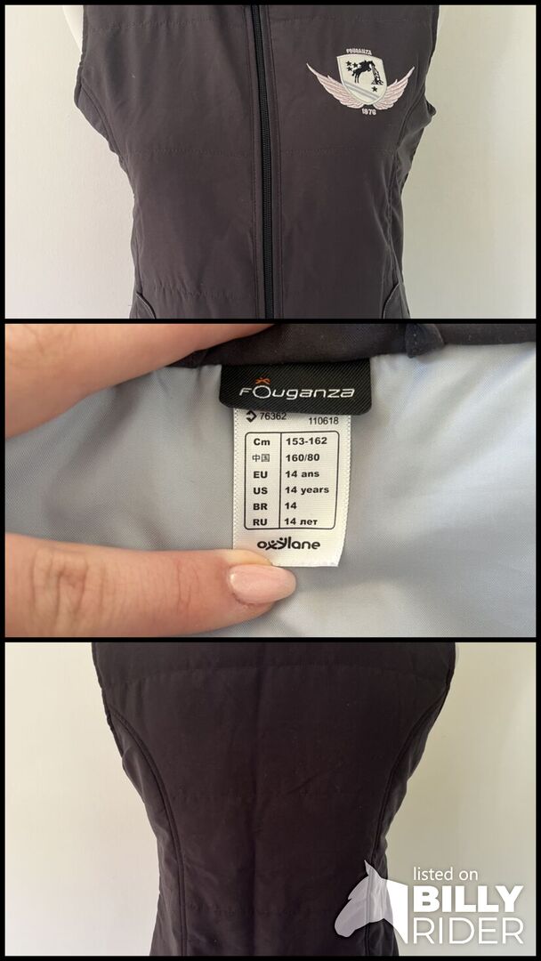 Kamizelka jeździecka ciemnoszara - Lekka kamizelka jeździecka, która jest idealna na okres przejściowy i łatwo dopasowuje się do ochraniacza. W bardzo dobrym stanie