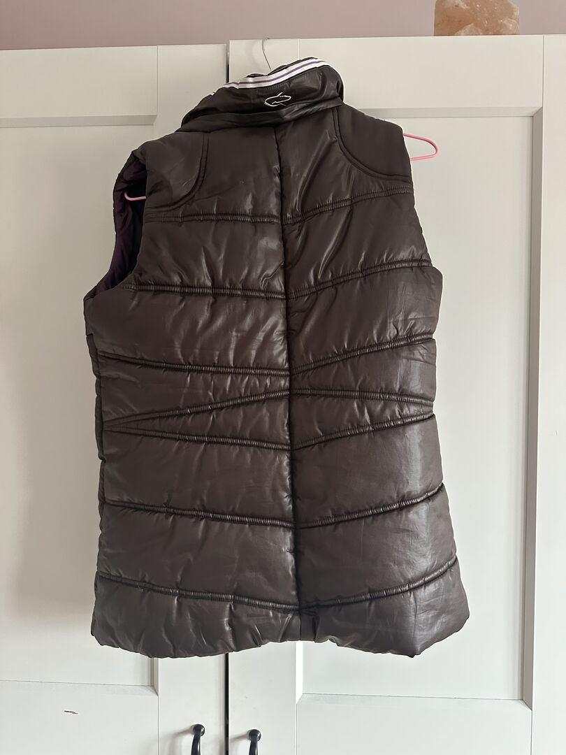 Kamizelka zapewnia przyjemne ciepło i można ją łączyć na wiele sposobów. Jest w dobrym stanie, z wyjątkiem małej dziurki w podszewce, która nie jest zauważalna podczas noszenia.