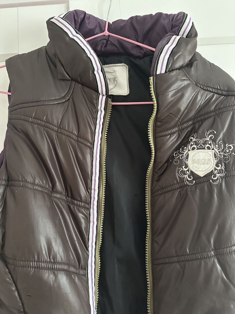 Kamizelka Malouk S - Sprzedam pikowaną kamizelkę Malouk w pięknym brązowym kolorze z fioletowymi akcentami.